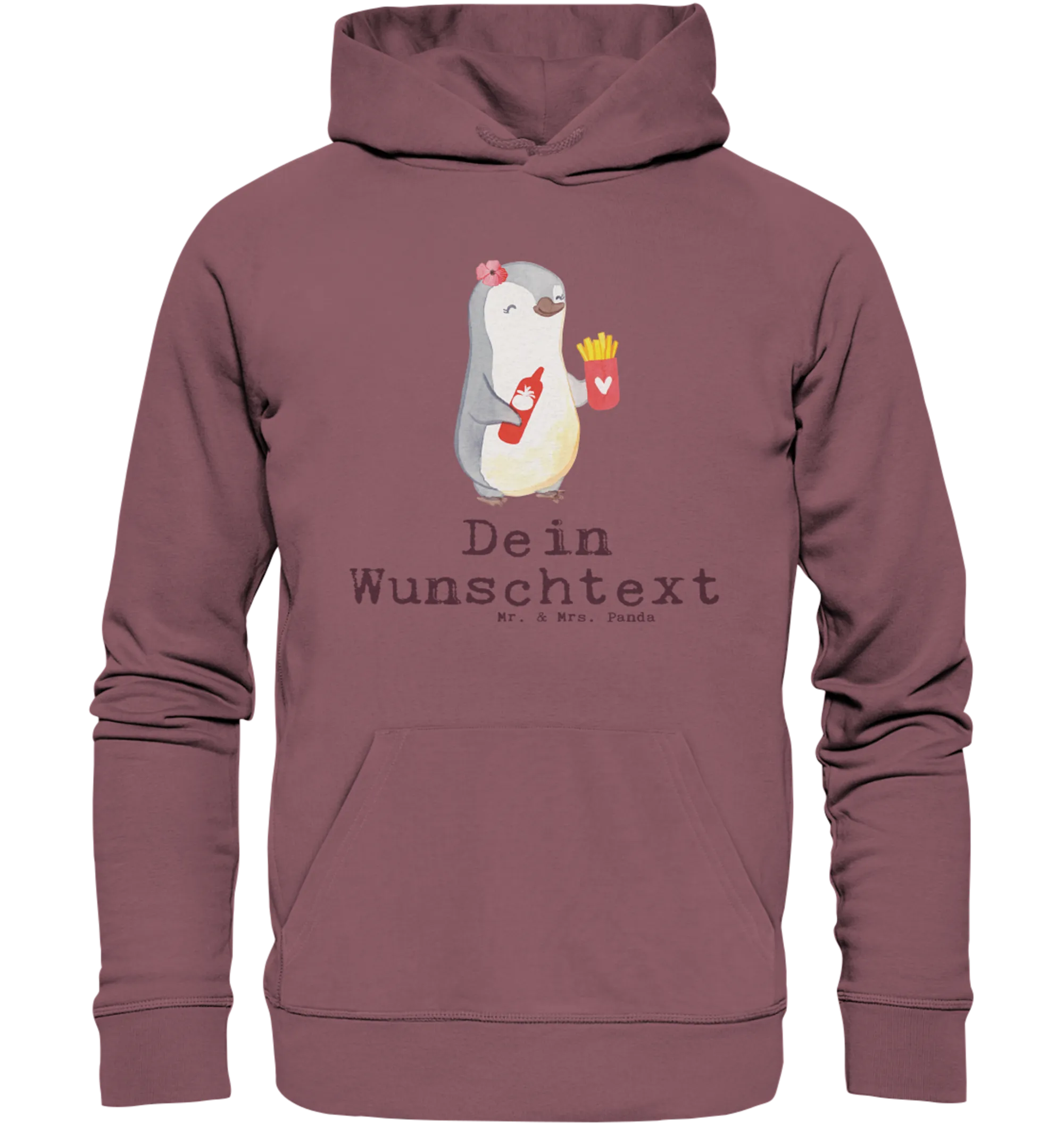 Dieser Hoodie ist unisex und in verschiedenen Größen erhältlich, sodass du sicher die passende Option für Deine Liebsten findest. Es ist der perfekte Kapuzenpullover, der sowohl für den Alltag als auch für die Arbeit geeignet ist. Der individuelle Aufdruck des Namens oder eines Wunschtextes macht ihn zu einem ganz persönlichen Geschenk. Jeder Hoodie wird mit viel Liebe und Sorgfalt produziert und die Motive sind von Mrs. Panda handgezeichnet. Jede Bestellung bedeutet dir die Möglichkeit, ein Lächeln und Freude zu verbreiten. Machen wir gemeinsam die Welt ein bisschen bunter und herzlicher mit diesem charmanten Hoodie! Ob für die Imbissbesitzerin des Vertrauens oder als liebevolle Geste für deinen Arbeitskollegen - dieser Kapuzenpullover ist einfach ein Muss für jeden, der das Leben liebt, Spaß hat und die Freude an leckeren Snacks teilt.