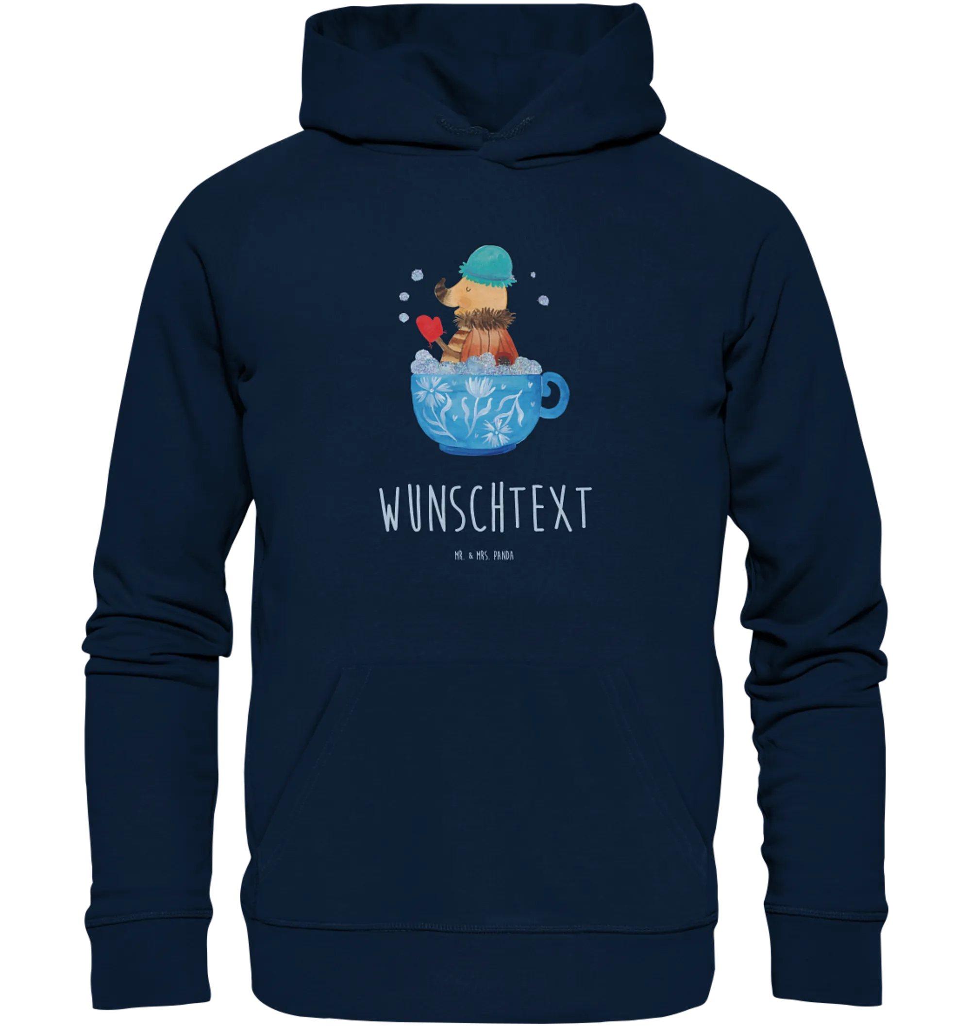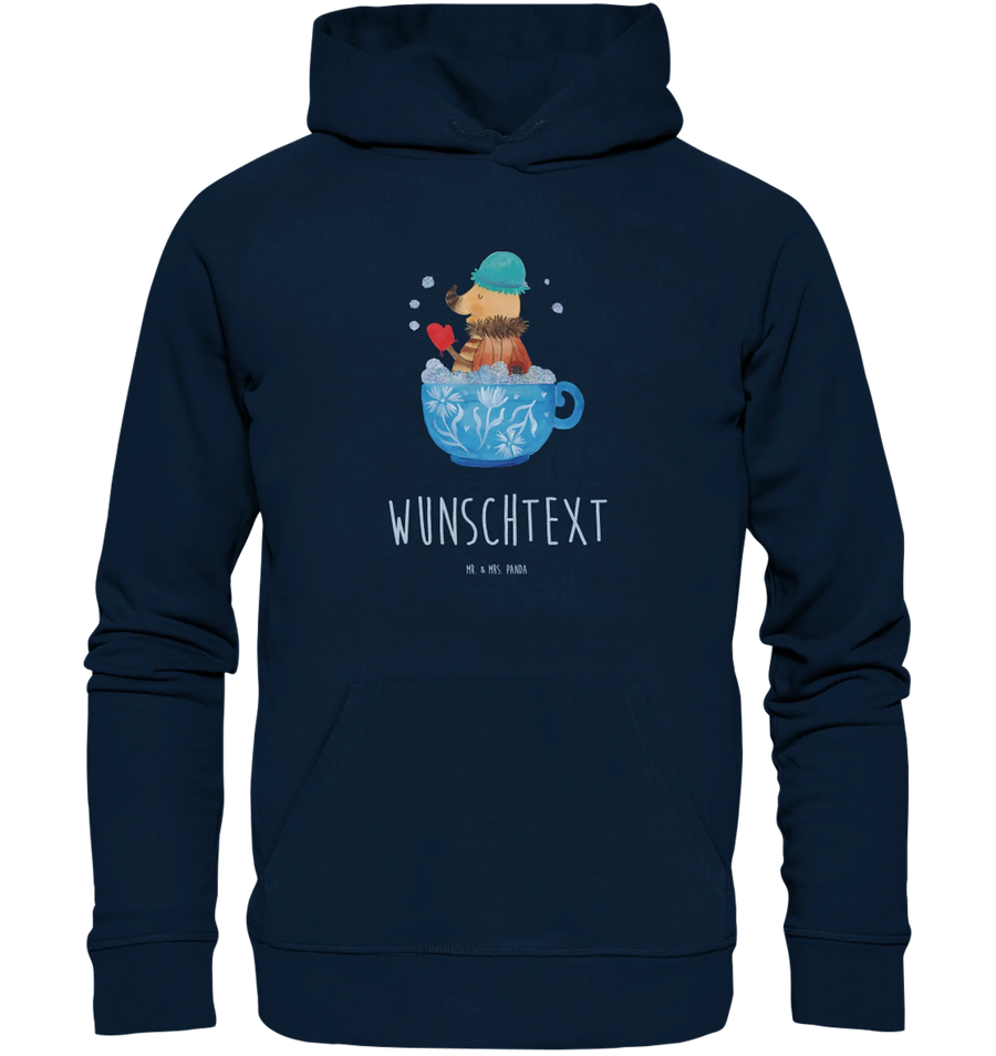 Kuschel dich ein in den personalisierten Hoodie von Mr. & Mrs. Panda! Aus 85 % Bio-Baumwolle und 15 % recyceltem Polyester gefertigt, sorgt er für ein unvergleichliches Tragegefühl. Mit einem Gewicht von 350 g/m² fühlt er sich leicht, aber dennoch robust an. Die gebürstete Innenseite macht ihn besonders weich und angenehm zu tragen. Das moderne Design, inklusive normaler Passform und langärmeligen, eingesetzten Ärmeln, lässt sich wunderbar kombinieren. Bei diesem Hoodie hast du die Wahl: Lass ihn mit deinem persönlichen Wunschtext oder Namen bedrucken. Ideal für Freizeitaktivitäten, beim Sport oder einfach zum Entspannen auf der Couch. Pflege deine Wäsche bei 30 Grad und drehe ihn vorher auf links, um die Drucke zu schonen.