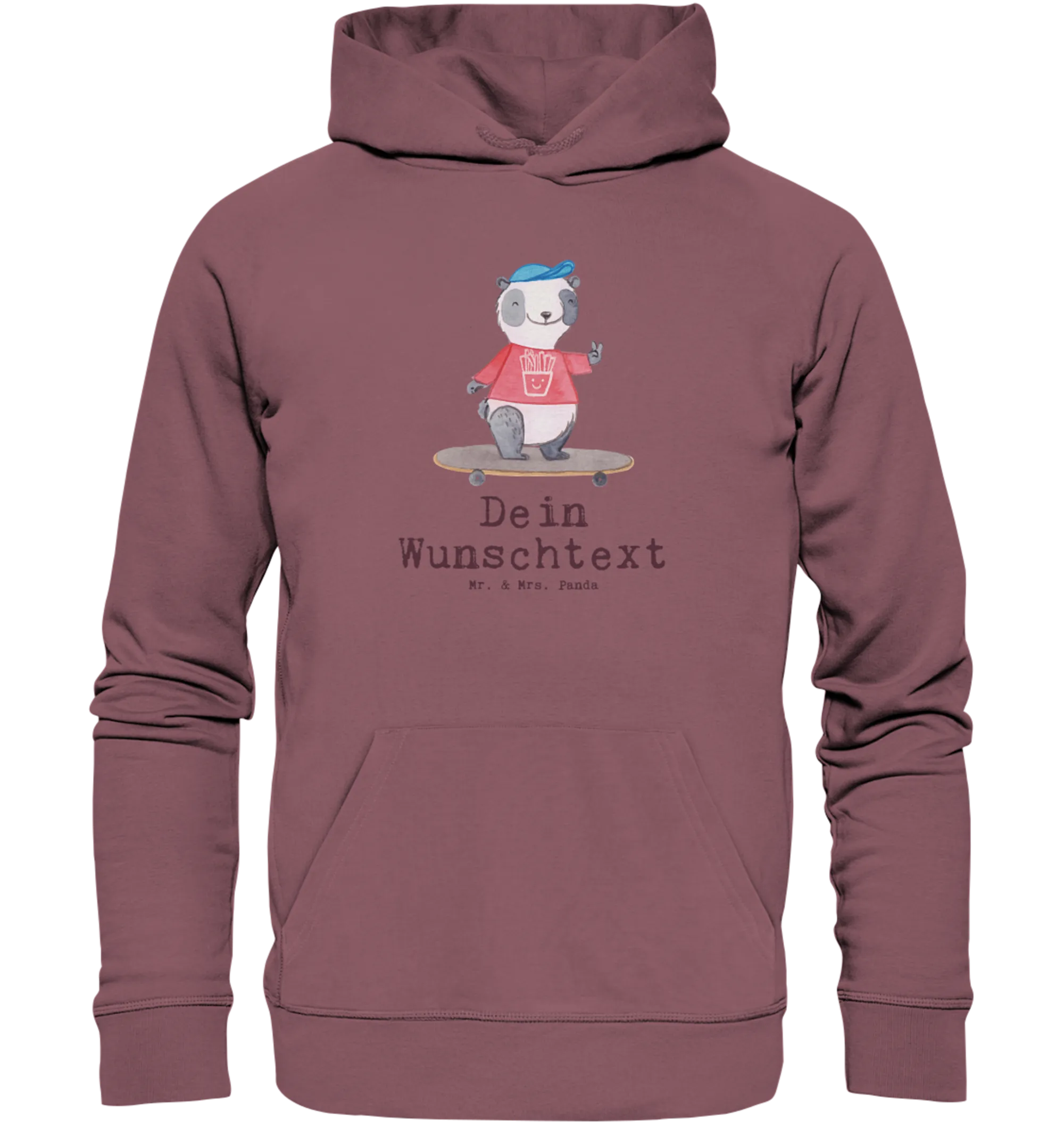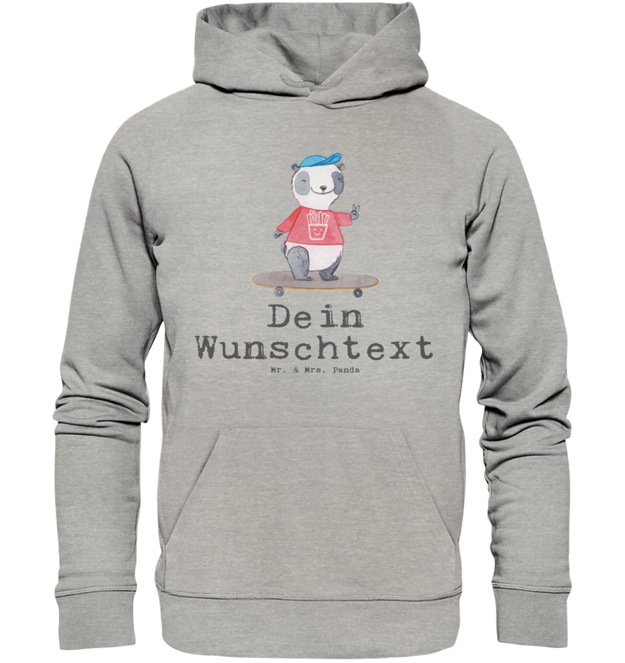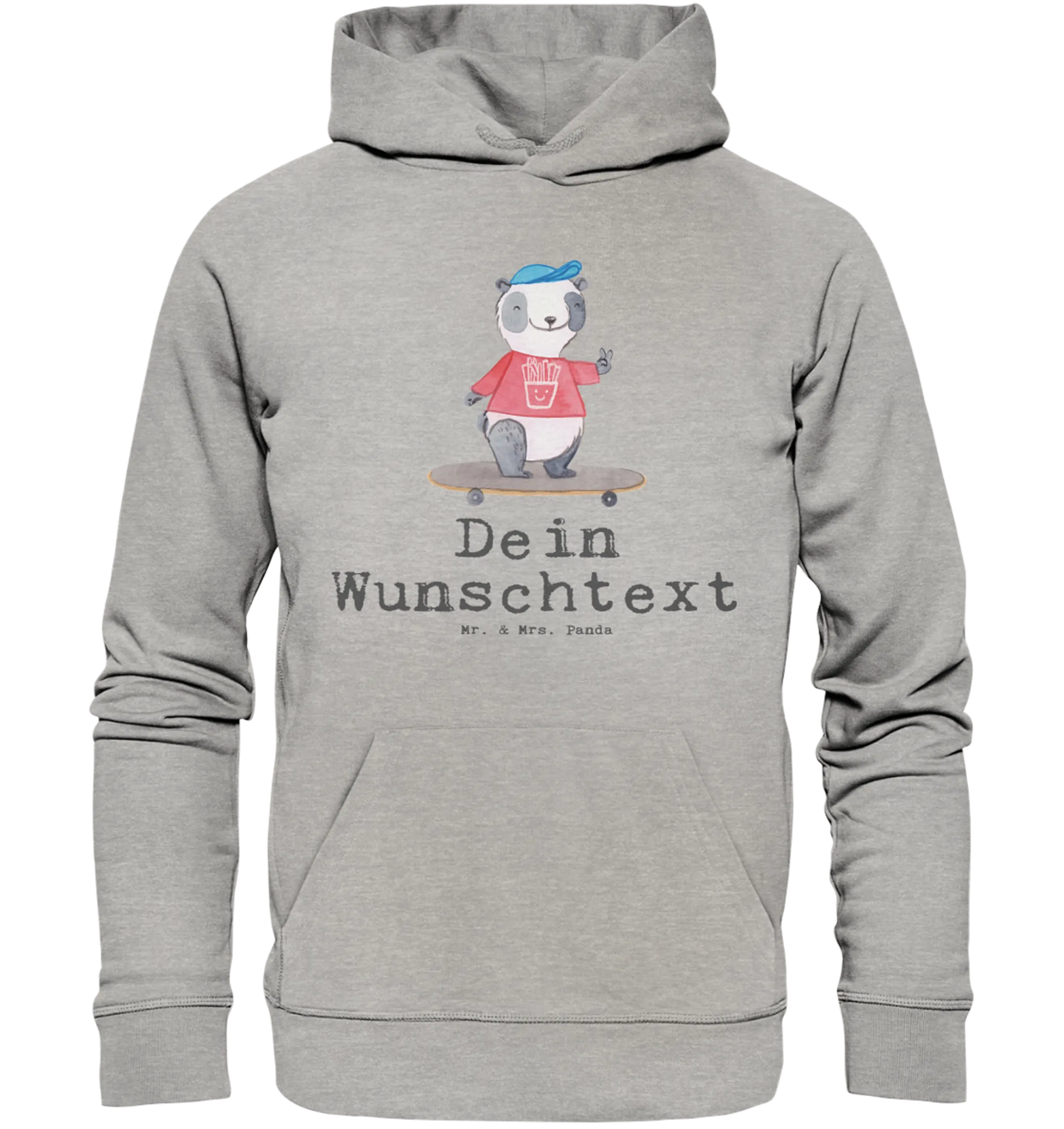 Hergestellt aus 85 % hochwertiger Bio-Baumwolle und 15 % recyceltem Polyester, ist er besonders weich und angenehm zu tragen. Der Hoodie bietet nicht nur einen lässigen Look, sondern auch eine persönliche Note, denn er kann mit deinem Wunschtext oder Namen versehen werden. Egal, ob du ihn zur nächsten Skate-Session trägst oder einfach nur bei einem entspannten Chill-Out nach dem Sport – dieser Kapuzenpullover mit dem süßen Panda Motiv bringt dich zum Schmunzeln.