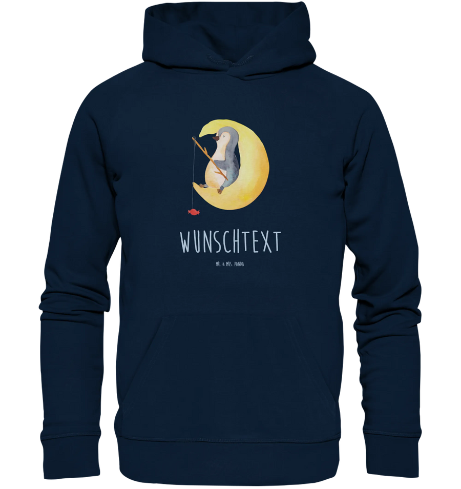 Der personalisierte Hoodie Pinguin Mond von Mr. & Mrs. Panda ist der perfekte Begleiter für gemütliche Abende und süße Träume! ❤️ Hergestellt aus 100% biologischer Baumwolle und extra weichem Fleece, wirst du ihn lieben! Die niedlichen Pinguine auf einer Mondsichel, die mit einer Angel nach Süßigkeiten fischt, sorgen für ein Lächeln auf jedem Gesicht.