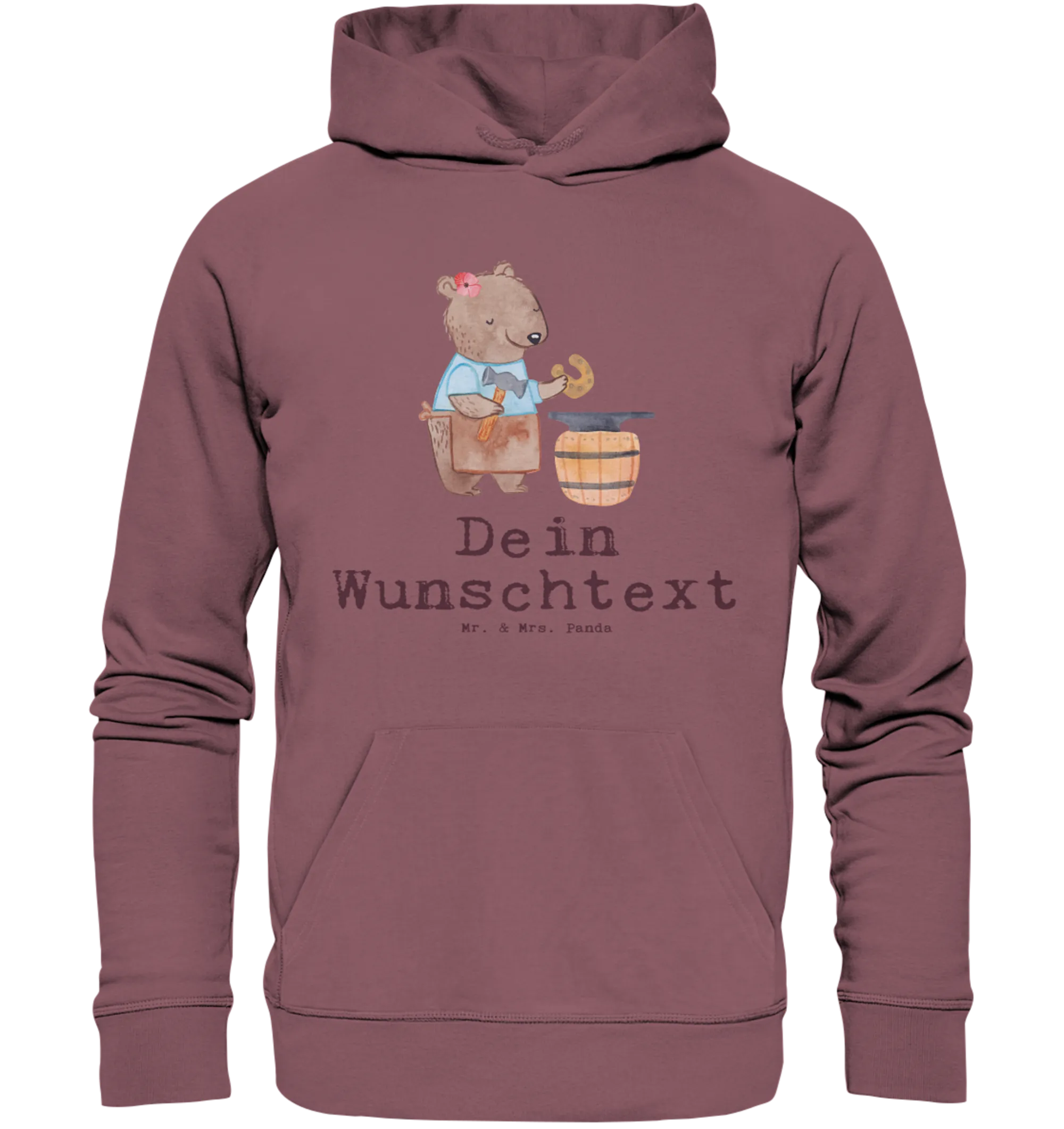 Der personalisierte Hoodie "Schmiedin mit Herz" aus der besonderen Kollektion Berufe von Mr. & Mrs. Panda ist der perfekte Begleiter für alle Schmiede und Schmiedinnen da draußen!