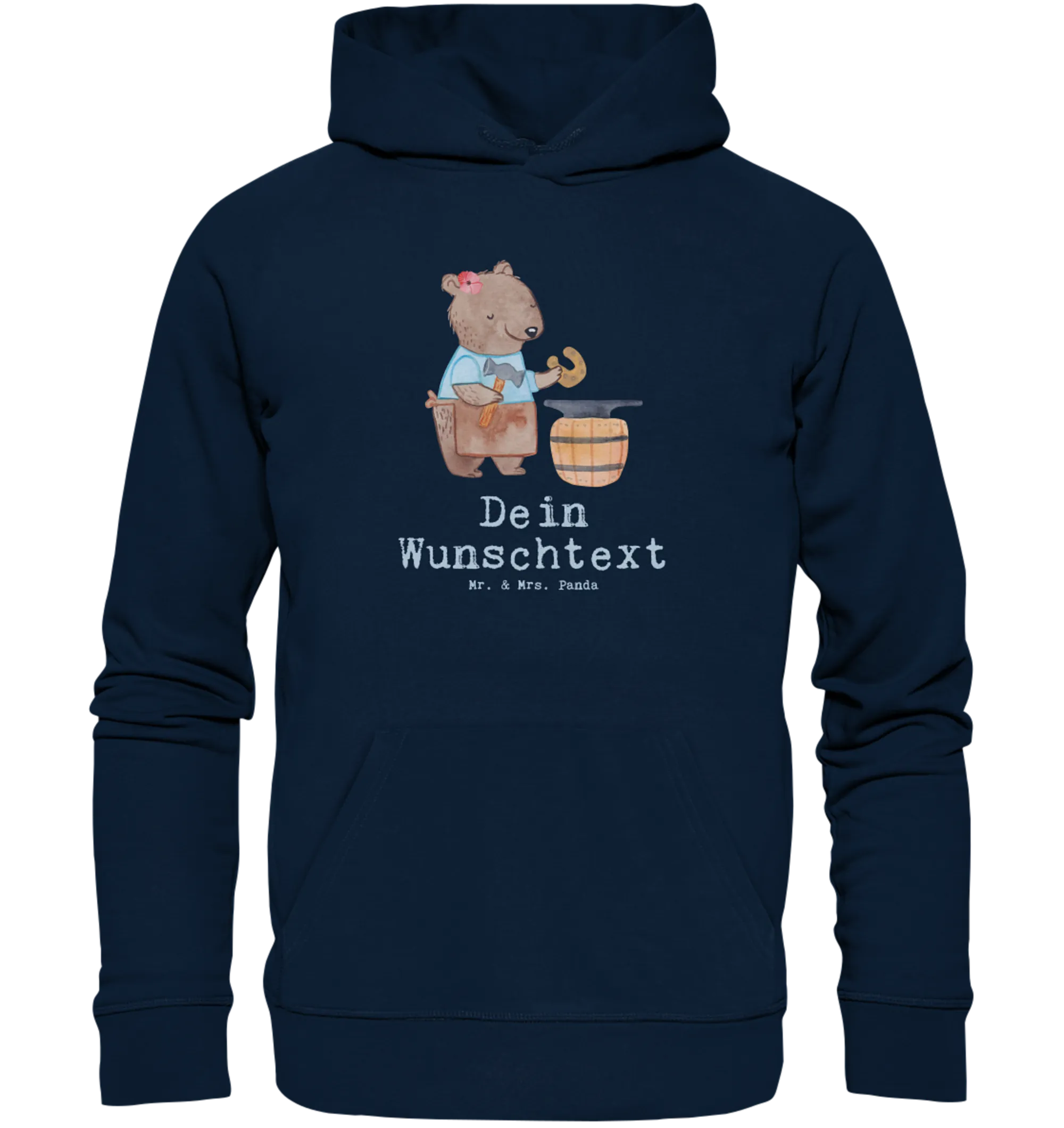 Ob zum Start ins Berufsleben, zur Beförderung oder zum Abschied - dieser Hoodie wird mit einem liebevollen Motiv und Deinem Wunschtext individuell gestaltet. Der süße dampfende Bär, der mit einem Amboss und einem glühenden Eisen arbeitet, ziert diesen Kapuzenpullover, zusammen mit dem Spruch: "Du bist nur ein halber Mensch, wenn du keine Schmiedin bist." Damit zauberst Du jedem ein Lächeln ins Gesicht!