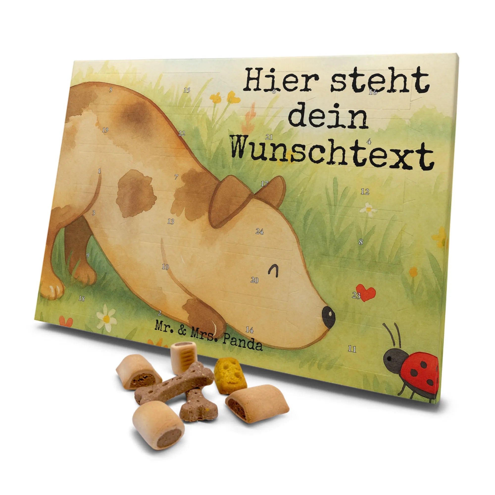 Personalisierter Adventskalender für Hunde – ein liebevolles Geschenk von Mr. & Mrs. Panda für deinen liebsten Fellfreund. Der Kalender ist mit fröhlichen Motiven und charmanten Sprüchen bedruckt und lässt sich individuell mit deinem Wunschtext oder Namen personalisieren. Wir setzen auf brillante Druckqualität und eine seidenmatte Oberflächenveredelung, dazu sind die Seitenflächen ebenfalls bedruckt – so wird der Adventskalender zum Hingucker. Gefüllt ist er mit 24 Premium-Hundekuchen in vier leckeren Sorten: Beef Cake Mix, Mini Knabberknochen, Käse Snack und Panino Röllchen. Die Hundekuchen sind luftig gebacken und bestehen aus hochwertigen Zutaten: Getreide, Glucose, Fleisch und tierische Nebenerzeugnisse, Öle und Fette sowie Mineralstoffe. Maße: 325 mm x 225 mm x 27 mm. Du kannst den Kalender aufstellen oder an der Wand aufhängen – ganz wie es dir gefällt. Besondere Hinweise: Ohne Konservierungsstoffe. Ob als Adventsüberraschung oder Geschenk – dieser personalisierte Kalender macht die Vorweihnachtszeit für Hund und Halter noch schöner.