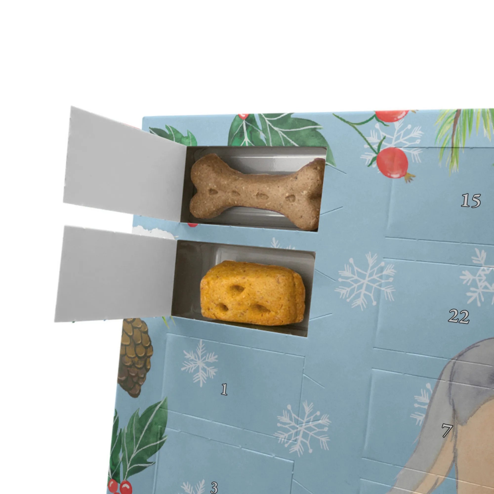 Personalisierter Adventskalender für Hunde – ein liebevolles Geschenk von Mr. & Mrs. Panda für deinen liebsten Fellfreund. Der Kalender ist mit fröhlichen Motiven und charmanten Sprüchen bedruckt und lässt sich individuell mit deinem Wunschtext oder Namen personalisieren. Wir setzen auf brillante Druckqualität und eine seidenmatte Oberflächenveredelung, dazu sind die Seitenflächen ebenfalls bedruckt – so wird der Adventskalender zum Hingucker. Gefüllt ist er mit 24 Premium-Hundekuchen in vier leckeren Sorten: Beef Cake Mix, Mini Knabberknochen, Käse Snack und Panino Röllchen. Die Hundekuchen sind luftig gebacken und bestehen aus hochwertigen Zutaten: Getreide, Glucose, Fleisch und tierische Nebenerzeugnisse, Öle und Fette sowie Mineralstoffe. Maße: 325 mm x 225 mm x 27 mm. Du kannst den Kalender aufstellen oder an der Wand aufhängen – ganz wie es dir gefällt. Besondere Hinweise: Ohne Konservierungsstoffe. Ob als Adventsüberraschung oder Geschenk – dieser personalisierte Kalender macht die Vorweihnachtszeit für Hund und Halter noch schöner.