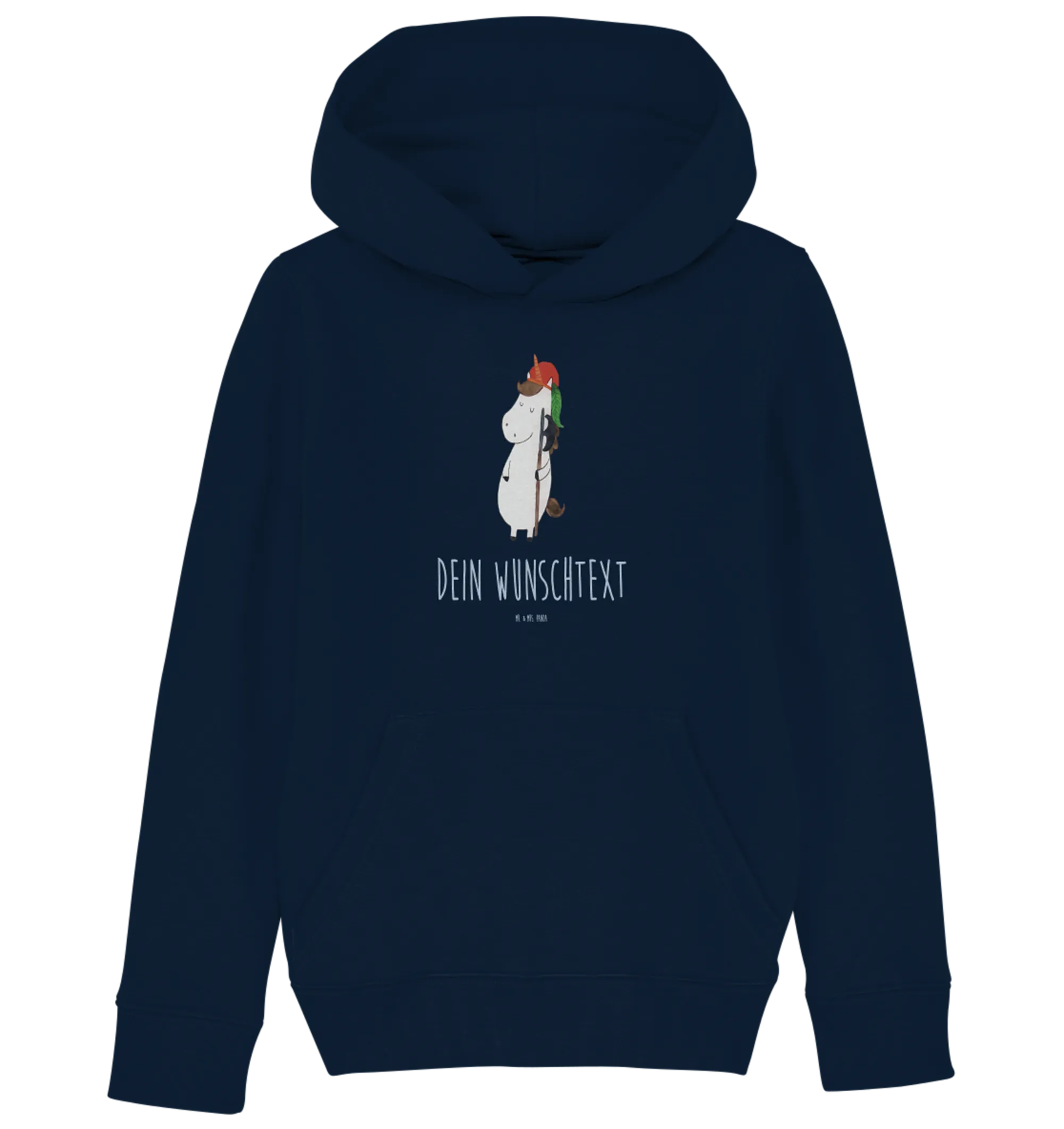Der personalisierte Kinder-Hoodie Einhorn Bube aus der bezaubernden Einhorn-Kollektion von Mr. & Mrs. Panda ist das perfekte Geschenk für kleine Einhornliebhaber. Besonders für Kinder im Alter von 9 bis 11 Jahren ist dieser Kapuzenpullover ideal. Der Hoodie besticht durch das liebevoll handgezeichnete Motiv eines Einhorns, das mit einem verspielten Ausdruck und charmanten Accessoires begeistert. Dieses Einhorn, das einen Helm trägt und einen Stock in der Hand hält, vermittelt den Spruch: 'Sei der tapfere Bube zwischen den Königen!'. Der Hoodie ist nicht nur stylisch, sondern auch super bequem aus hochwertiger Öko-Baumwolle gefertigt, die sowohl sanft zur Haut als auch umweltfreundlich ist.