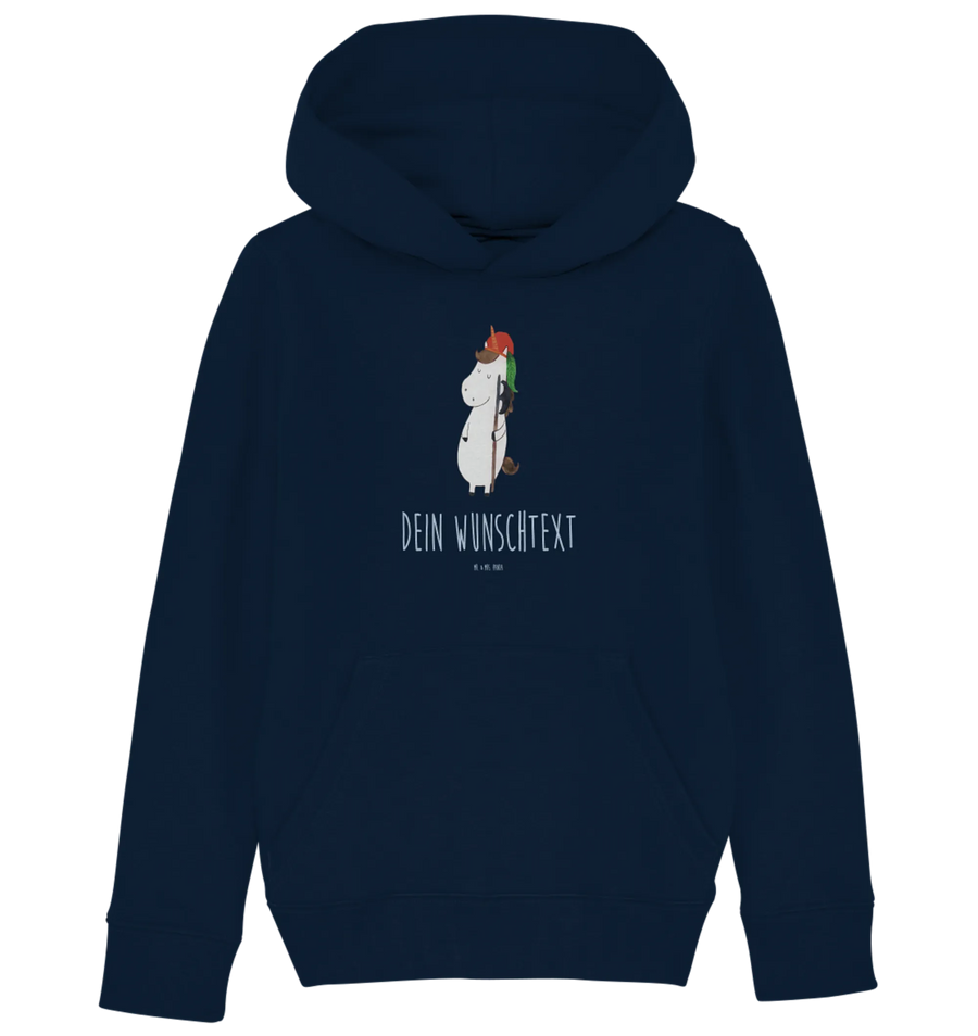 Das süße, freundlich wirkende Einhorn trägt einen Helm und hält einen Stock in der einen Hand, während es in der anderen frei bleibt, was ihm einen kindlich-charmanten Charakter verleiht. Der Hoodie eignet sich hervorragend für jeden Anlass, sei es zum Geburtstag, als Überraschung oder einfach als tolles Kleidungsstück für den Alltag.