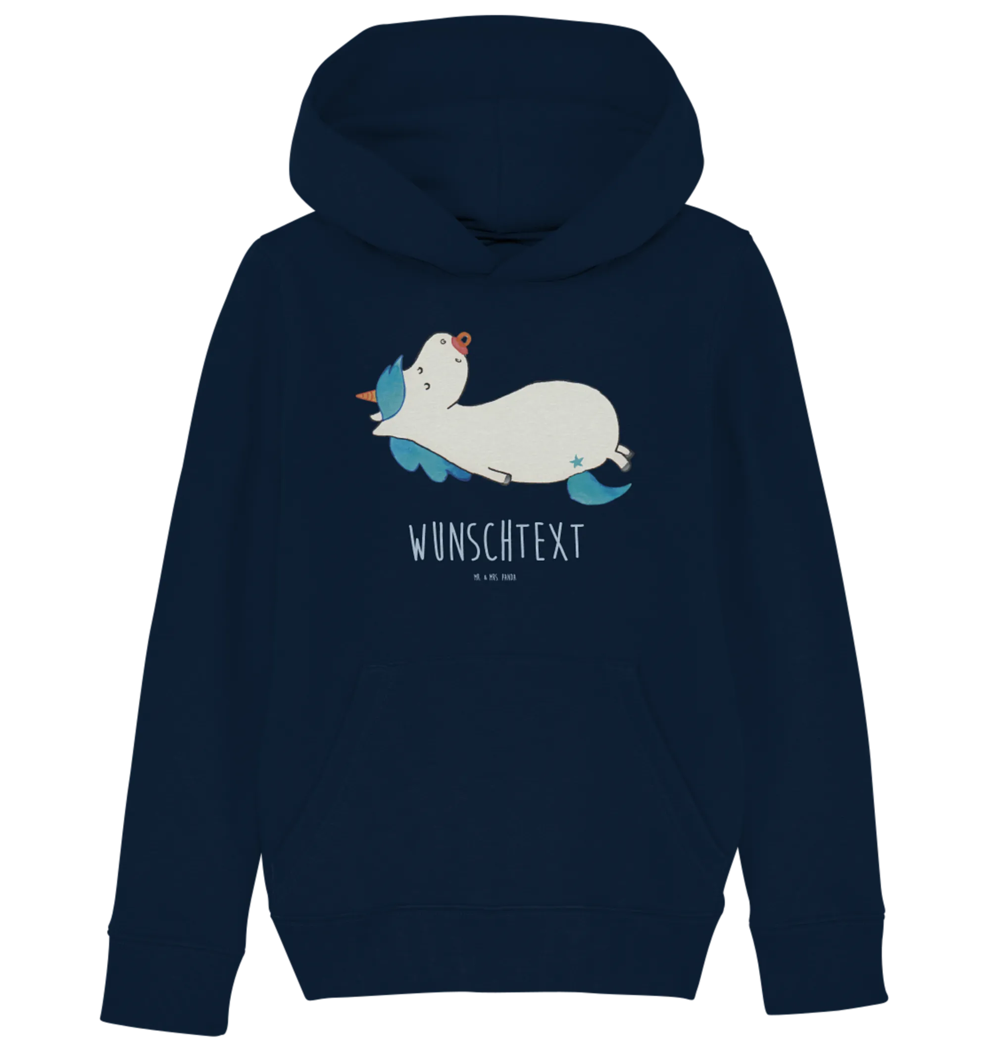 Mit seinem französischen Marineblau ist der Hoodie nicht nur schick, sondern auch vielseitig kombinierbar. Egal ob zur Hose, zum Rock oder über einem T-Shirt – dieser Hoodie wird zum Lieblingsstück im Kleiderschrank. Ein weiterer Vorteil: der Hoodie ist nicht nur stylisch, sondern auch pflegeleicht und langlebig. So bleibt der süße Einhorn-Hoodie über lange Zeit hinweg ein treuer Begleiter. Lass die Wünsche Deines Kindes wahr werden mit dem personalisierten Kinder-Hoodie "Einhorn Schnullie" von Mr. & Mrs. Panda. Ein Geschenk, das immer in Erinnerung bleibt und viel Freude bringt!