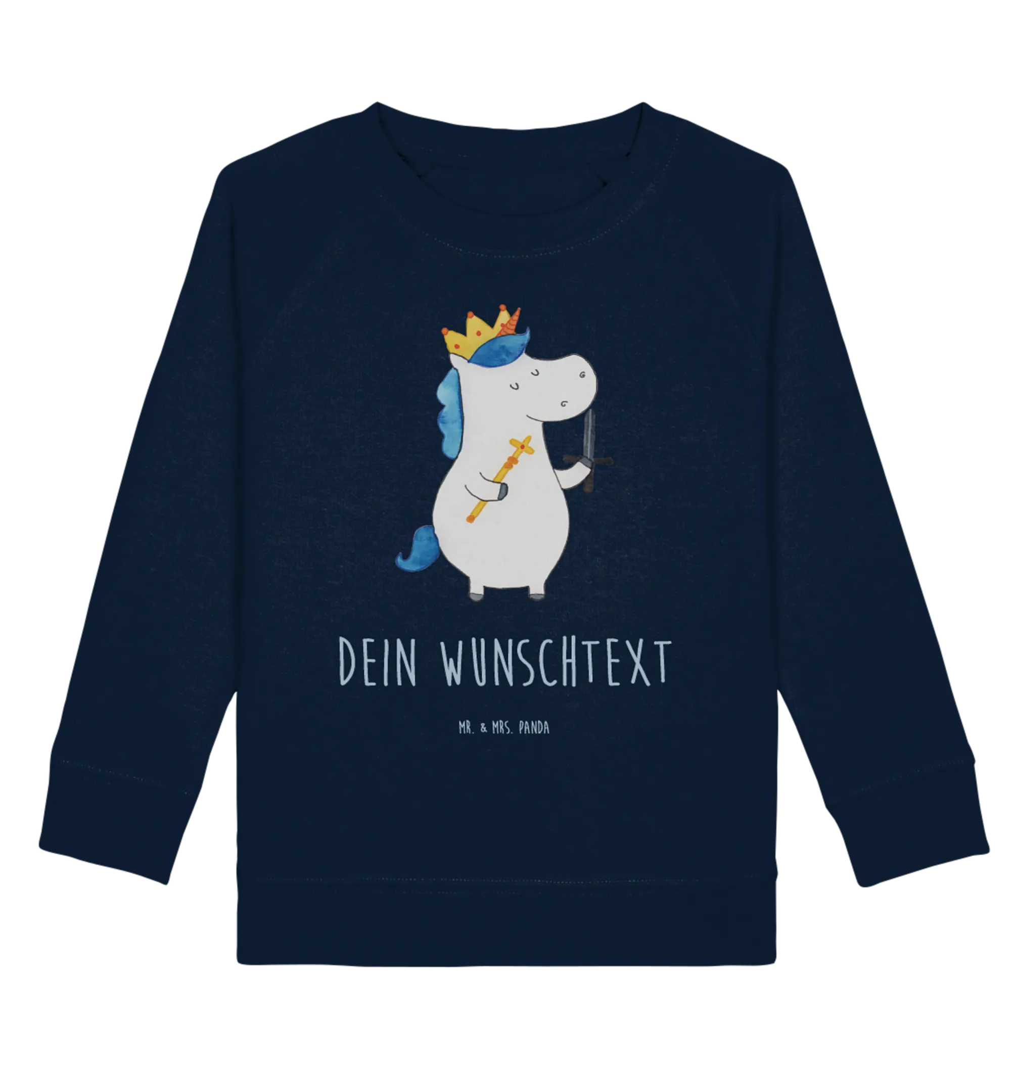 Entdecke den perfekten Begleiter für kleine Einhorn-Fans mit unserem personalisierten Kinder Pullover "Einhorn König mit Schwert" aus der exklusiven Einhorn-Kollektion von Mr. & Mrs. Panda!