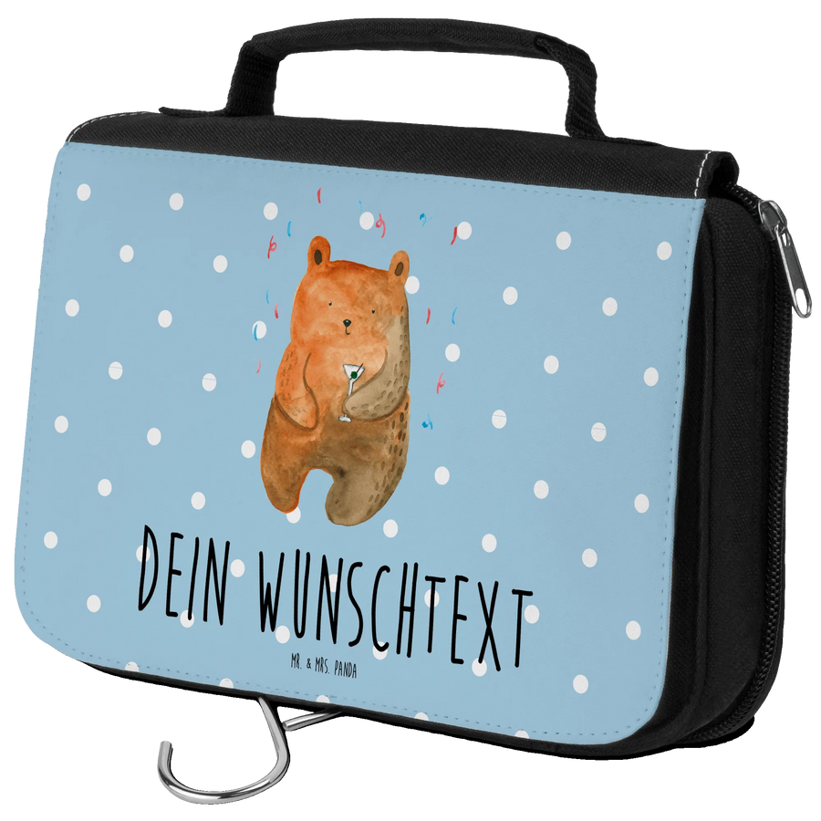 Auf dem Kulturbeutel prangt das fröhliche Bär Party Design, das mit einem Partyhütchen freundlich zur Feier einlädt. Der Bär verkörpert Lebensfreude und Spaß – genau das richtige für jede Party oder Feier!