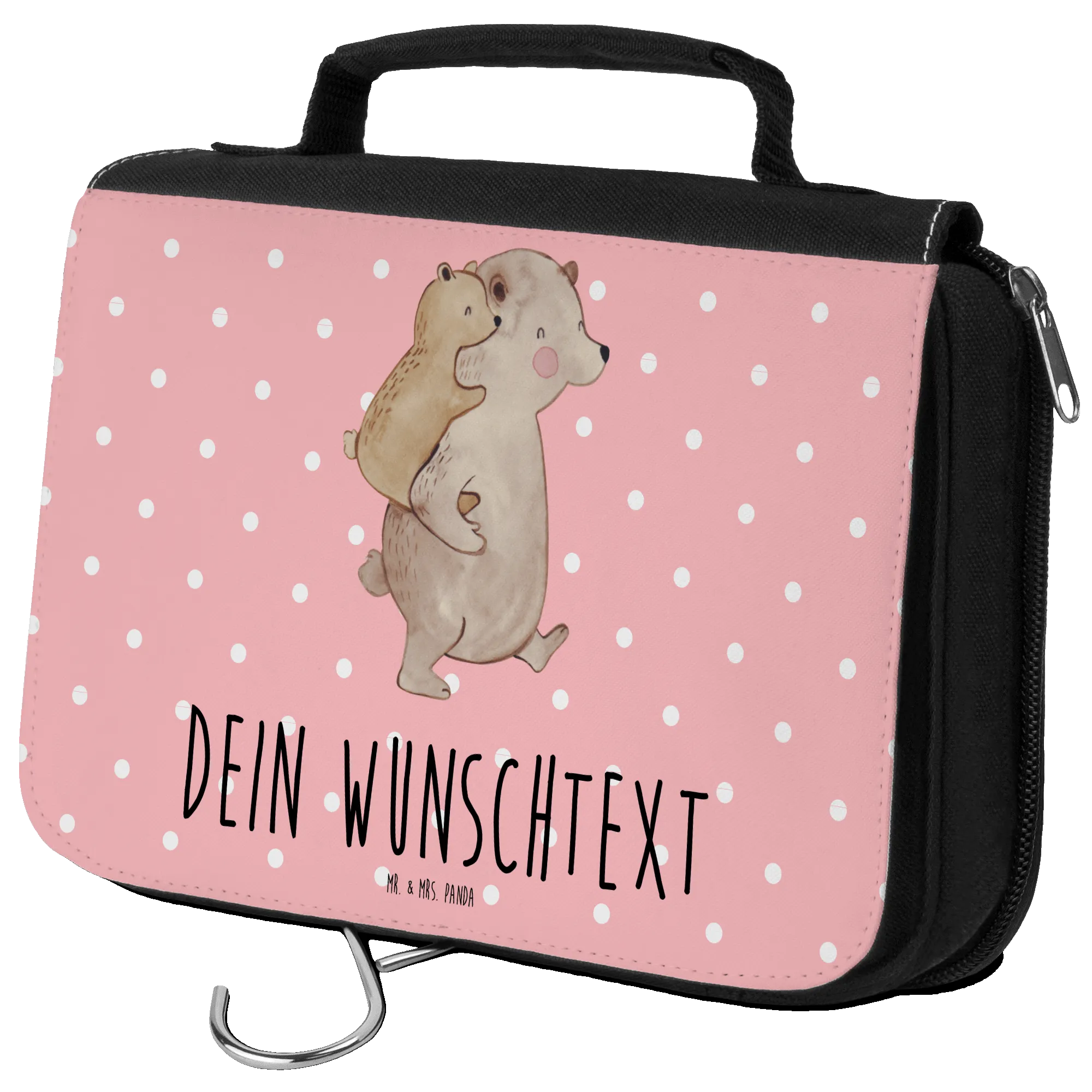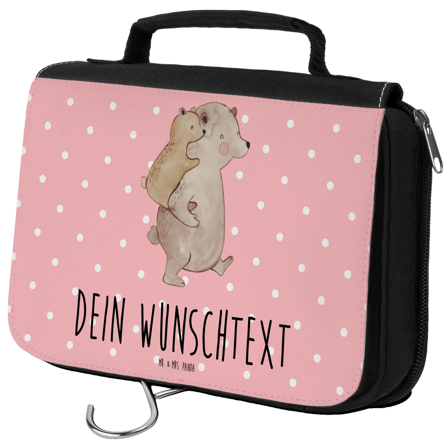 Personalisierter Kulturbeutel Papa Bär - Rot Pastell