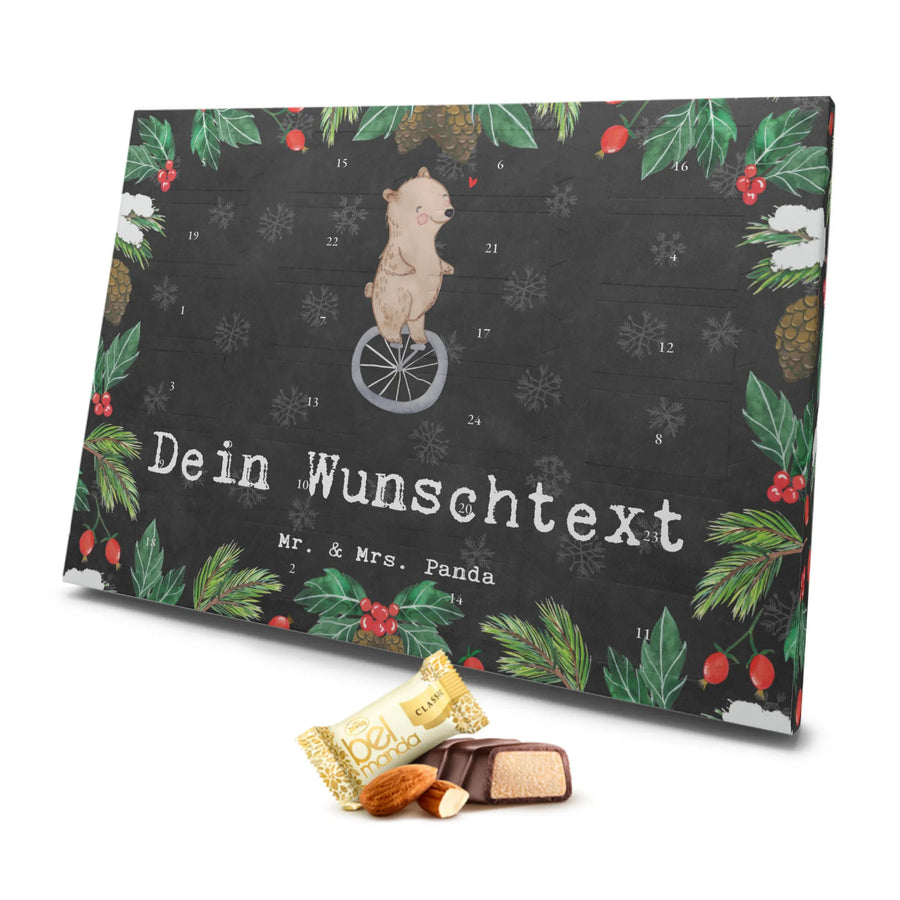 Personalisierter Marzipan Adventskalender Bär Einrad fahren - Schwarz