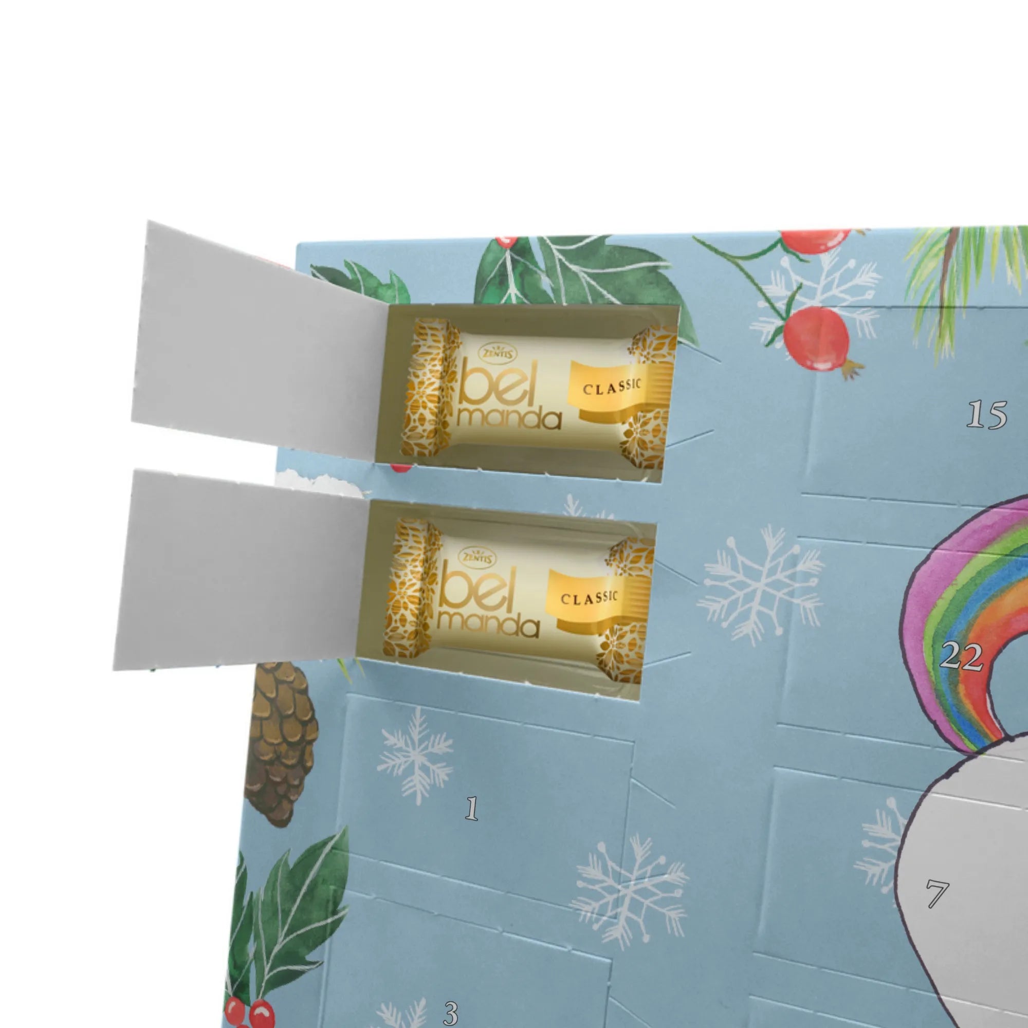 Der personalisierte Marzipan Adventskalender Einhorn stolzierend von Mr. & Mrs. Panda ist das perfekte Geschenk für alle, die Einhörner lieben und einen Hauch von Magie in der Adventszeit erleben möchten!