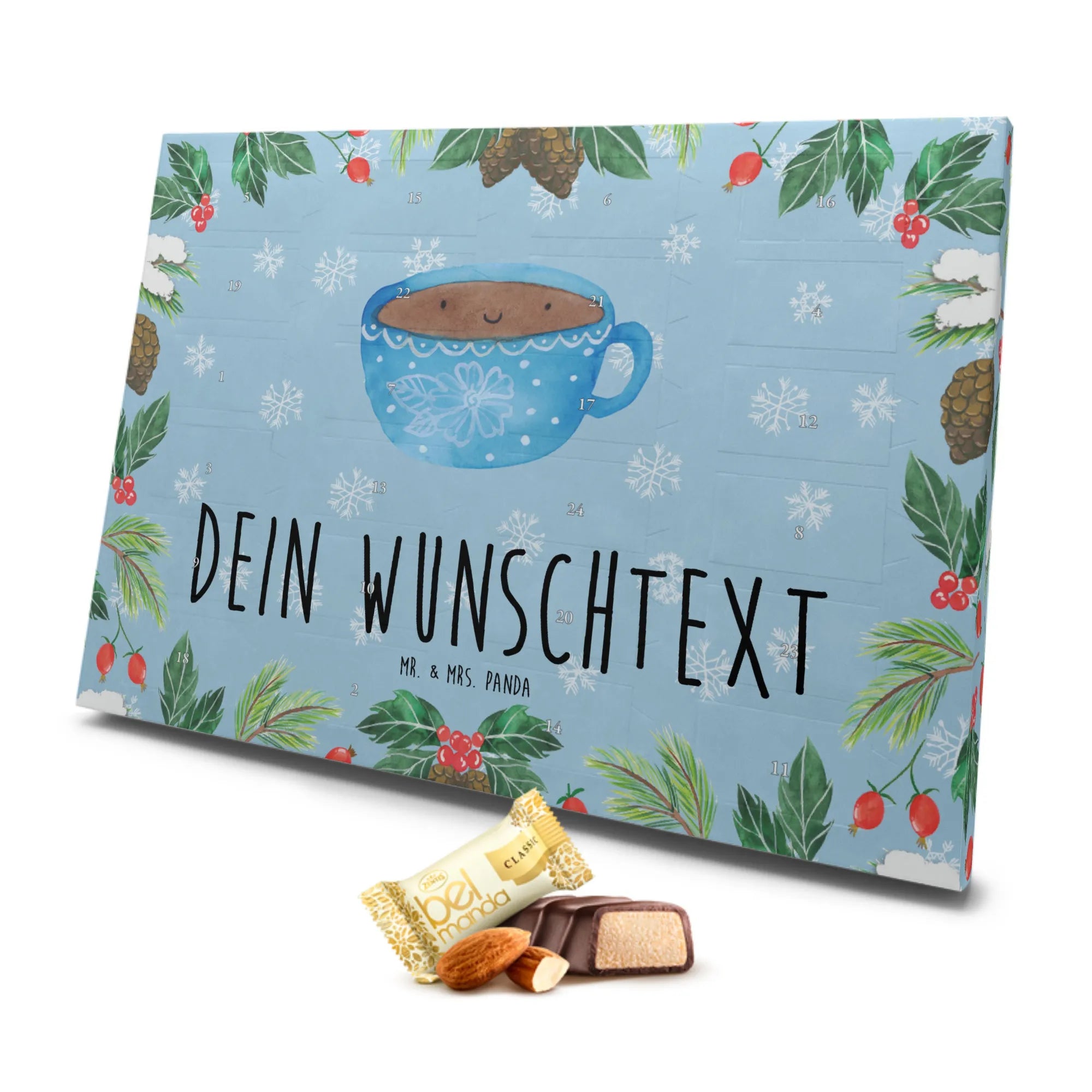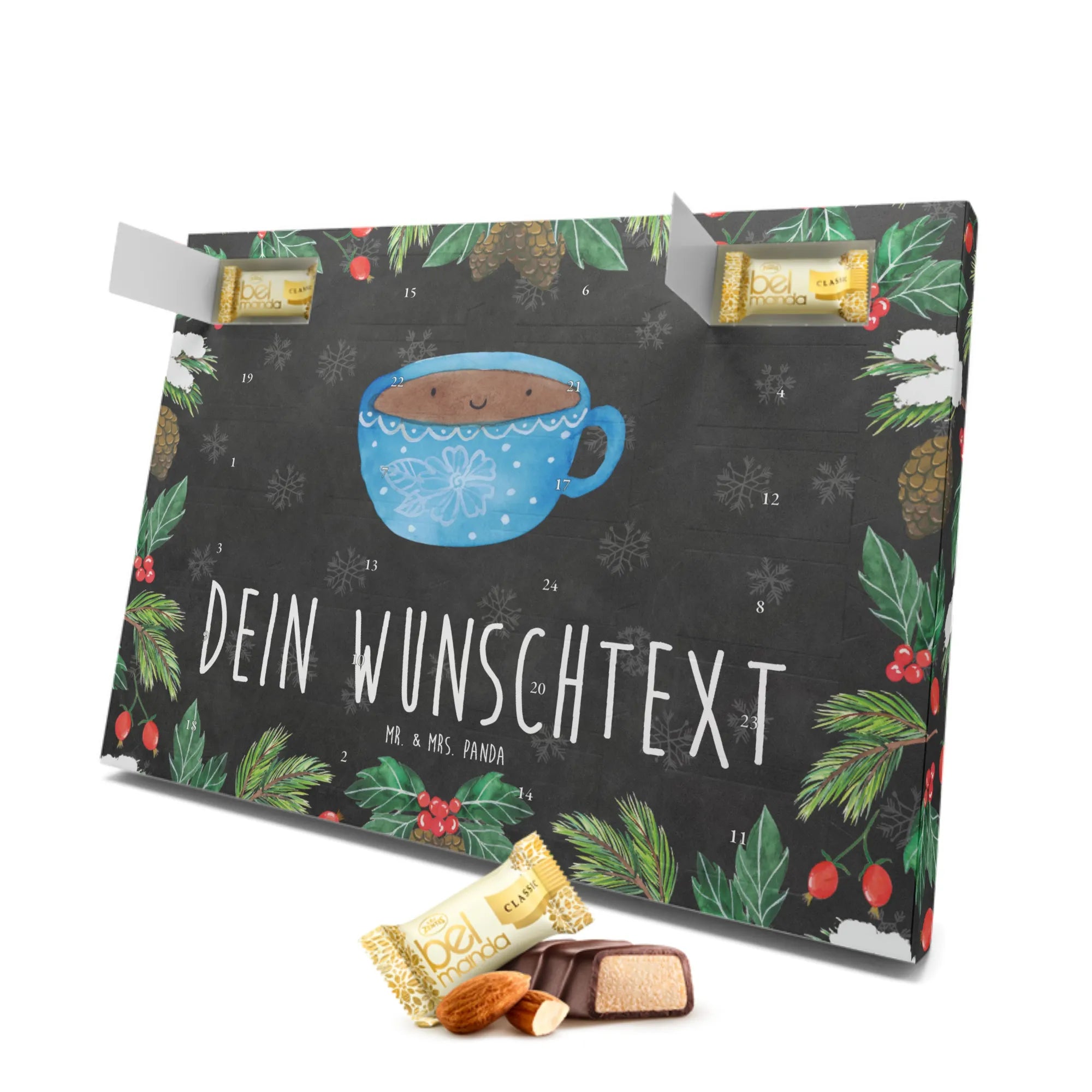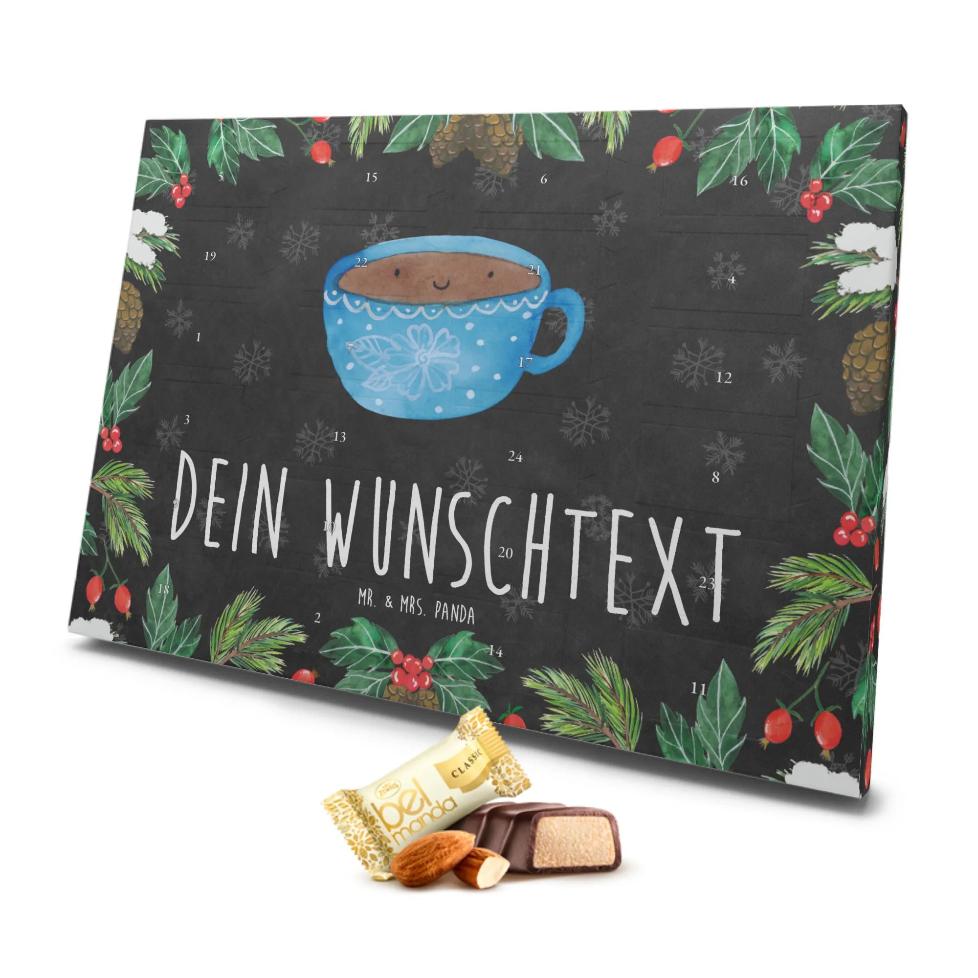 Greife zu und mache diesen Advent unvergesslich. Verschenke Freude, Genuss und eine ordentliche Portion Glück mit dem personalisierten Marzipan Adventskalender "Kaffee Tasse" von Mr. & Mrs. Panda! Lass es dir gut gehen und genieße die Vorfreude auf das Weihnachtsfest, Tag für Tag mit einer süßen Überraschung.
