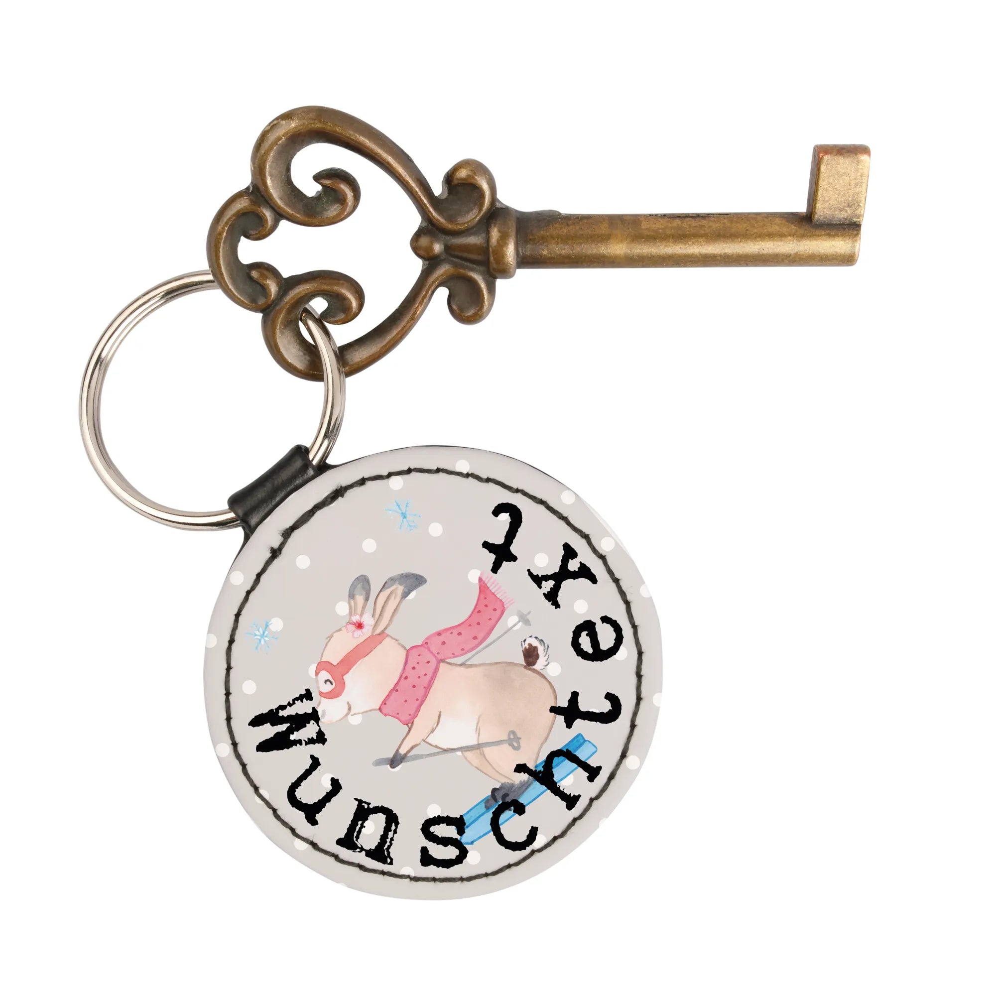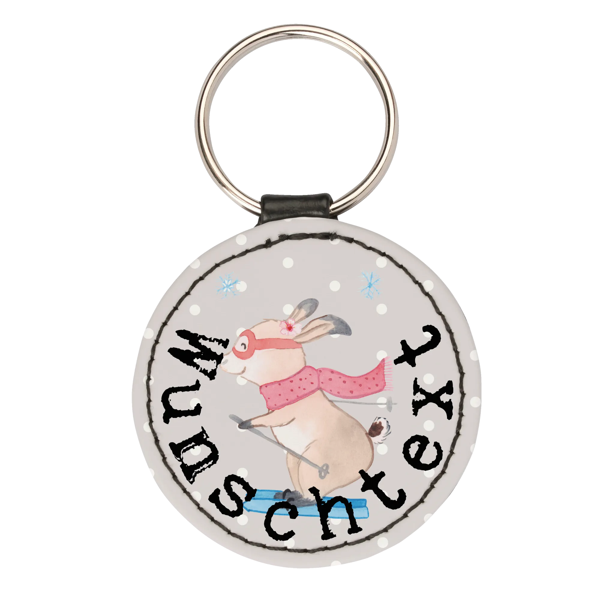 Personalisierter Schlüsselanhänger Hase Skifahren – Mr. & Mrs. Panda