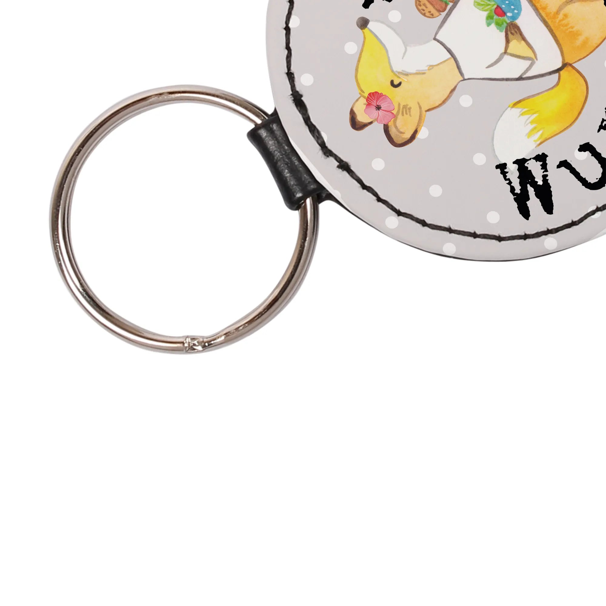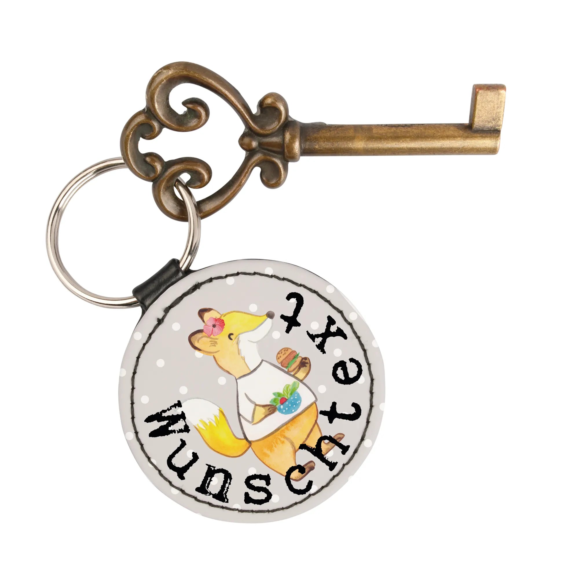 Der personalisierte Schlüsselanhänger "Systemgastronomin mit Herz" von Mr. & Mrs. Panda ist das perfekte Geschenk für alle, die in der Systemgastronomie arbeiten oder eine große Leidenschaft für diesen Beruf haben. Mit einem niedlichen Motiventwurf eines Fuchses, der ein T-Shirt trägt und frisch zubereitete Speisen serviert, bringt dieser Schlüsselanhänger ein Lächeln in den Alltag.