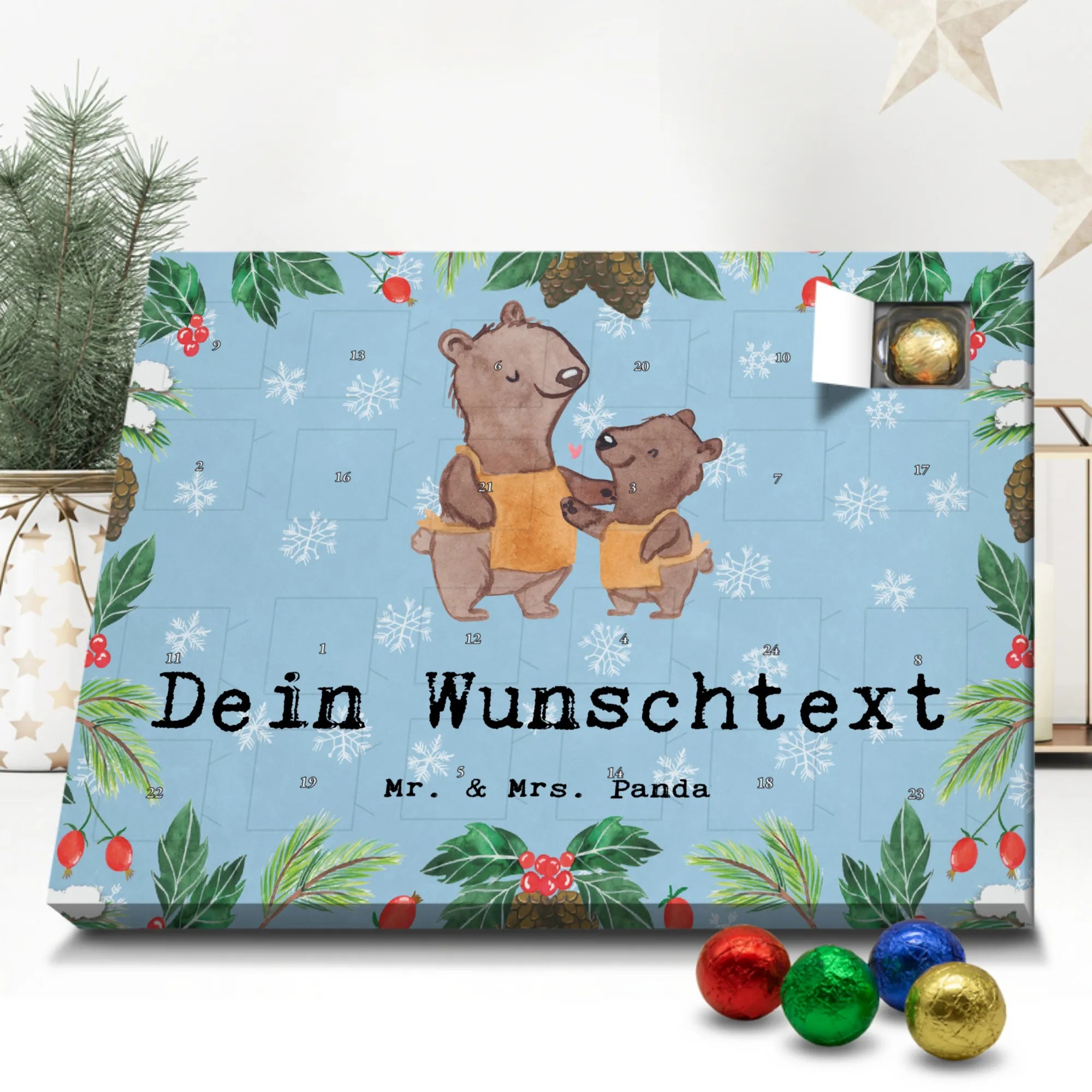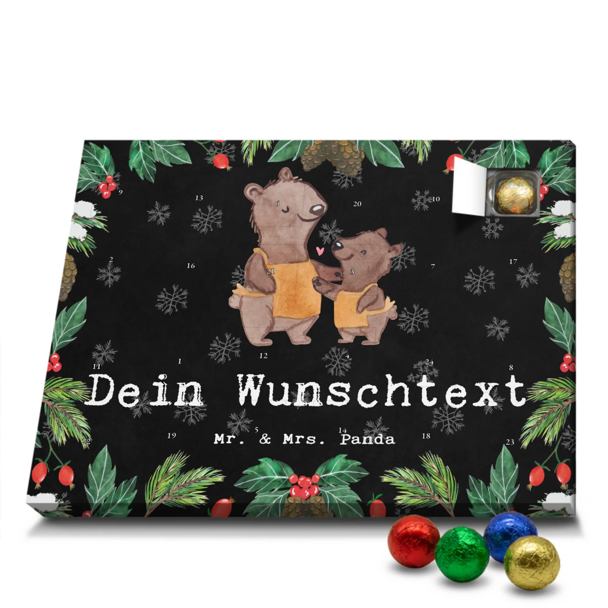 Gestalte Freude: Personalisiere deinen Schoko-Kalender und überrasche mit einem individuellen Adventsgruß von Mr. & Mrs. Panda!