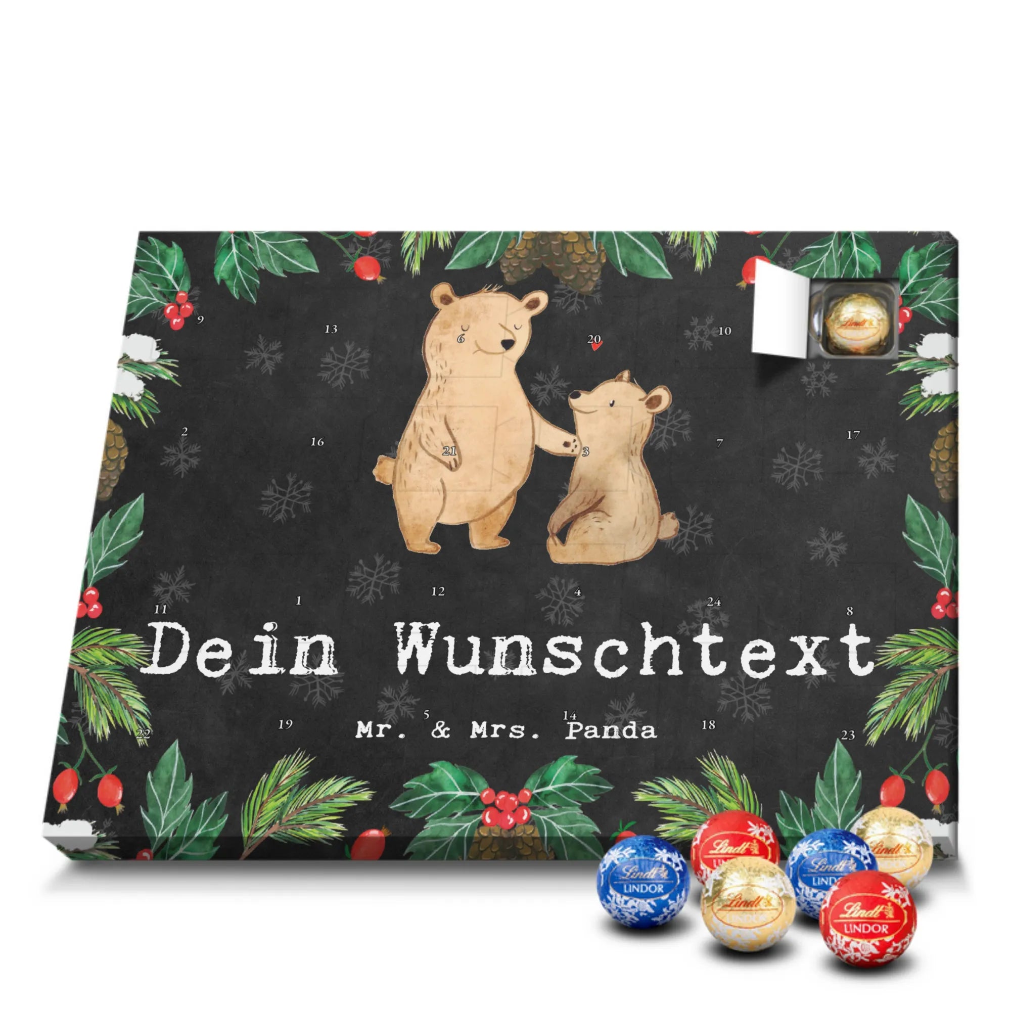 🐼 PERSONALISIERTER KALENDER: Individuell mit Namen, seidenmatte Optik, 233x178x24 mm, gefüllt mit Lindt Lindor Schokolade.