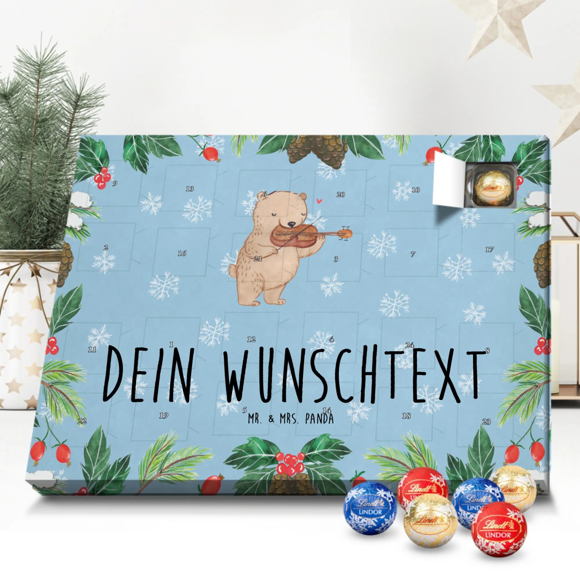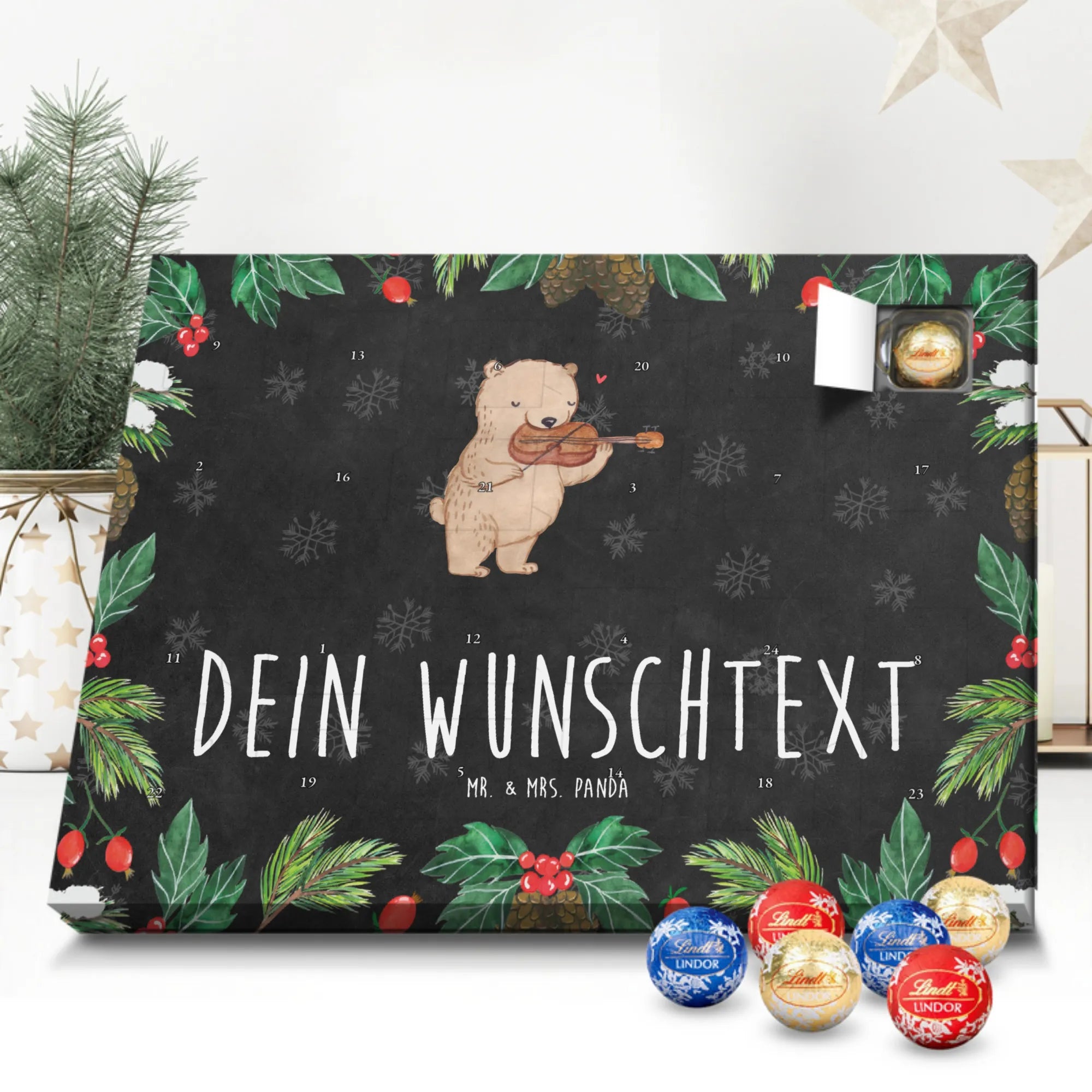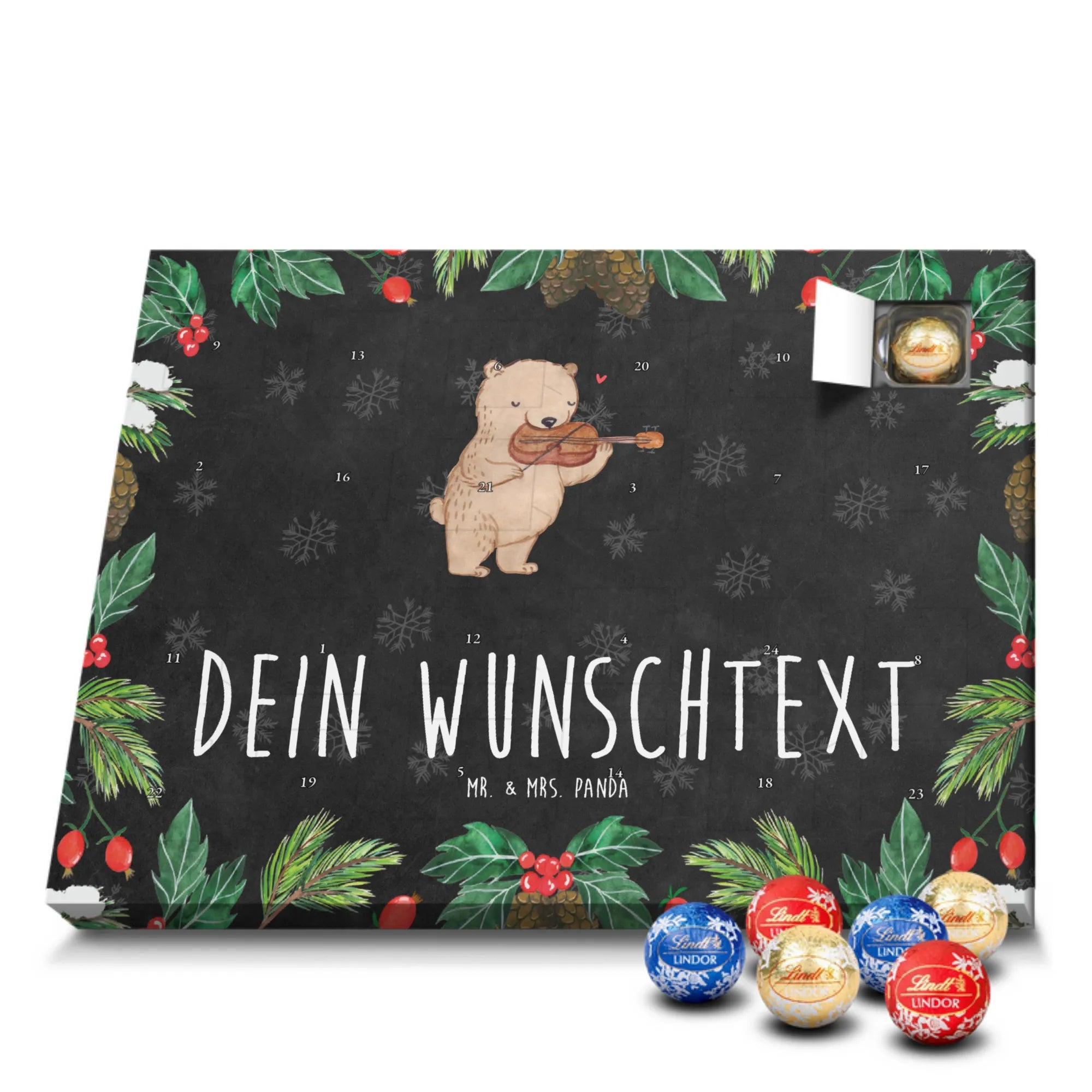 🐼 Schoko Adventskalender personalisiert mit Wunschtext, seidenmatt, gefüllt mit Lindt Hello.