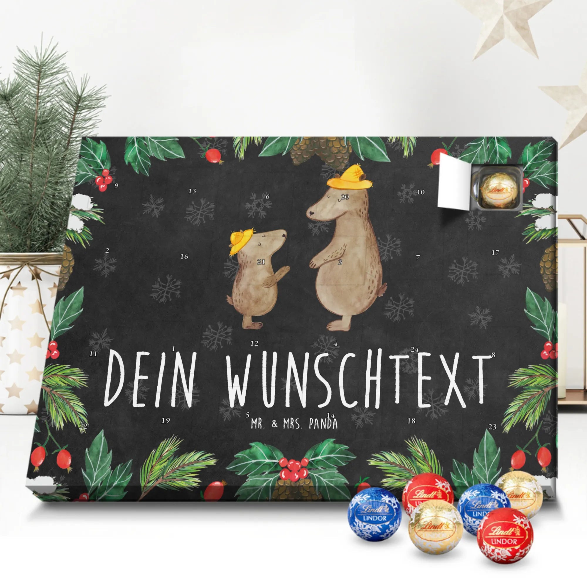 🐼 PERSONALISIERTER KALENDER: Individuell mit Namen, seidenmatte Optik, 233x178x24 mm, gefüllt mit Lindt Lindor Schokolade.
