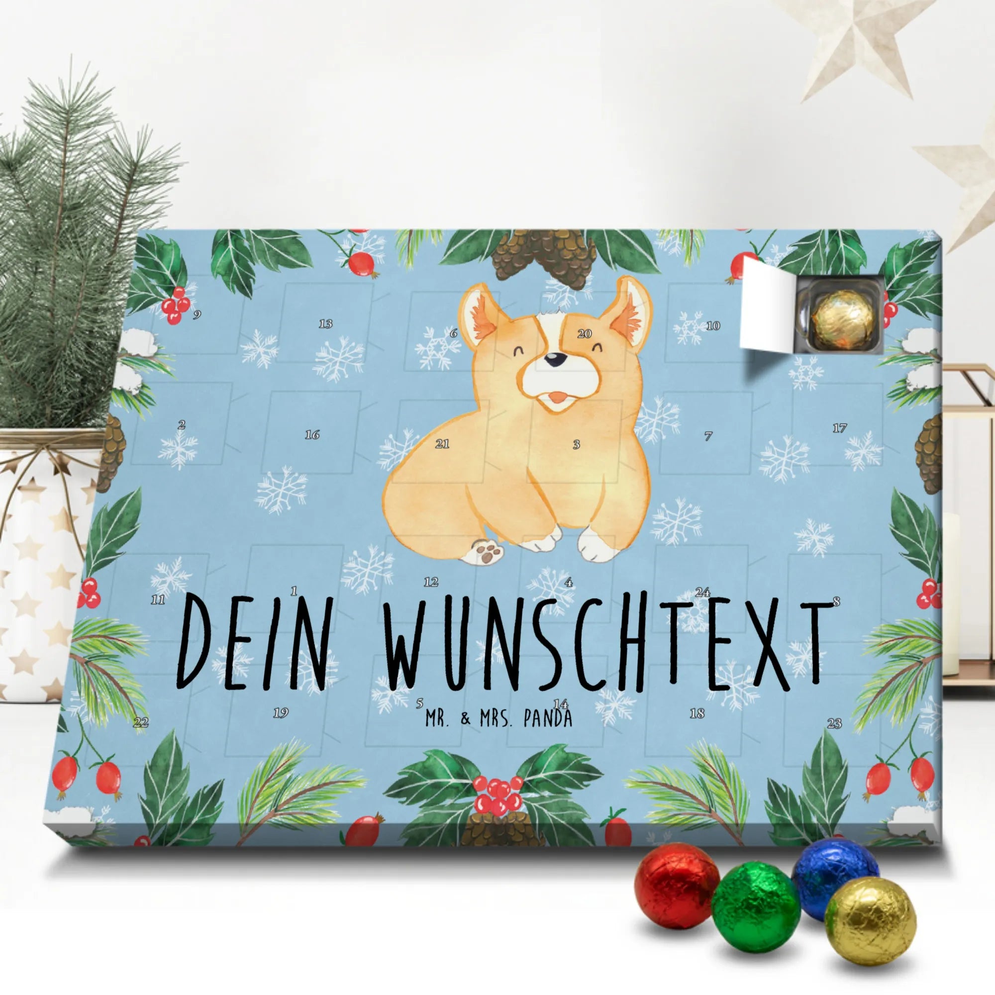 Personalisierter Adventskalender Corgie - Classic - Eisblau