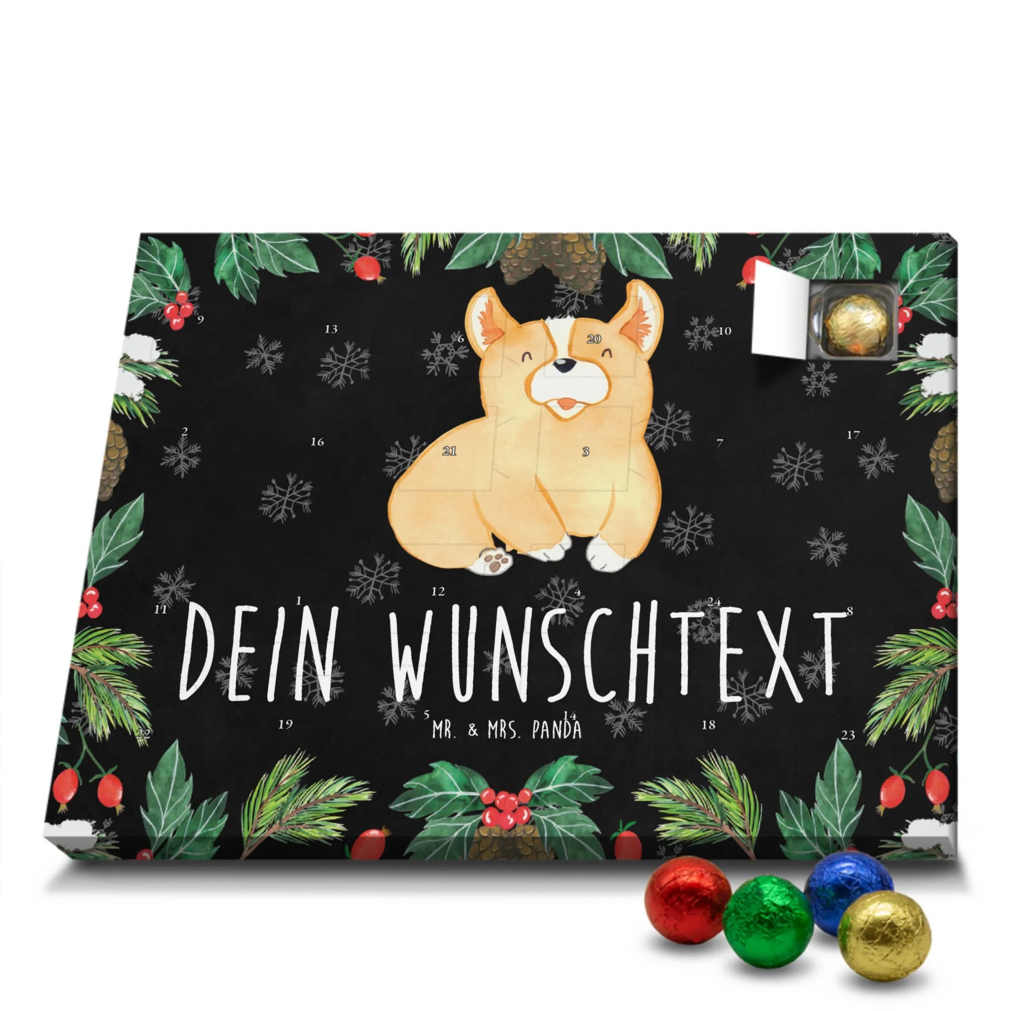 Gestalte Freude: Personalisiere deinen Schoko-Kalender und überrasche mit einem individuellen Adventsgruß von Mr. & Mrs. Panda!