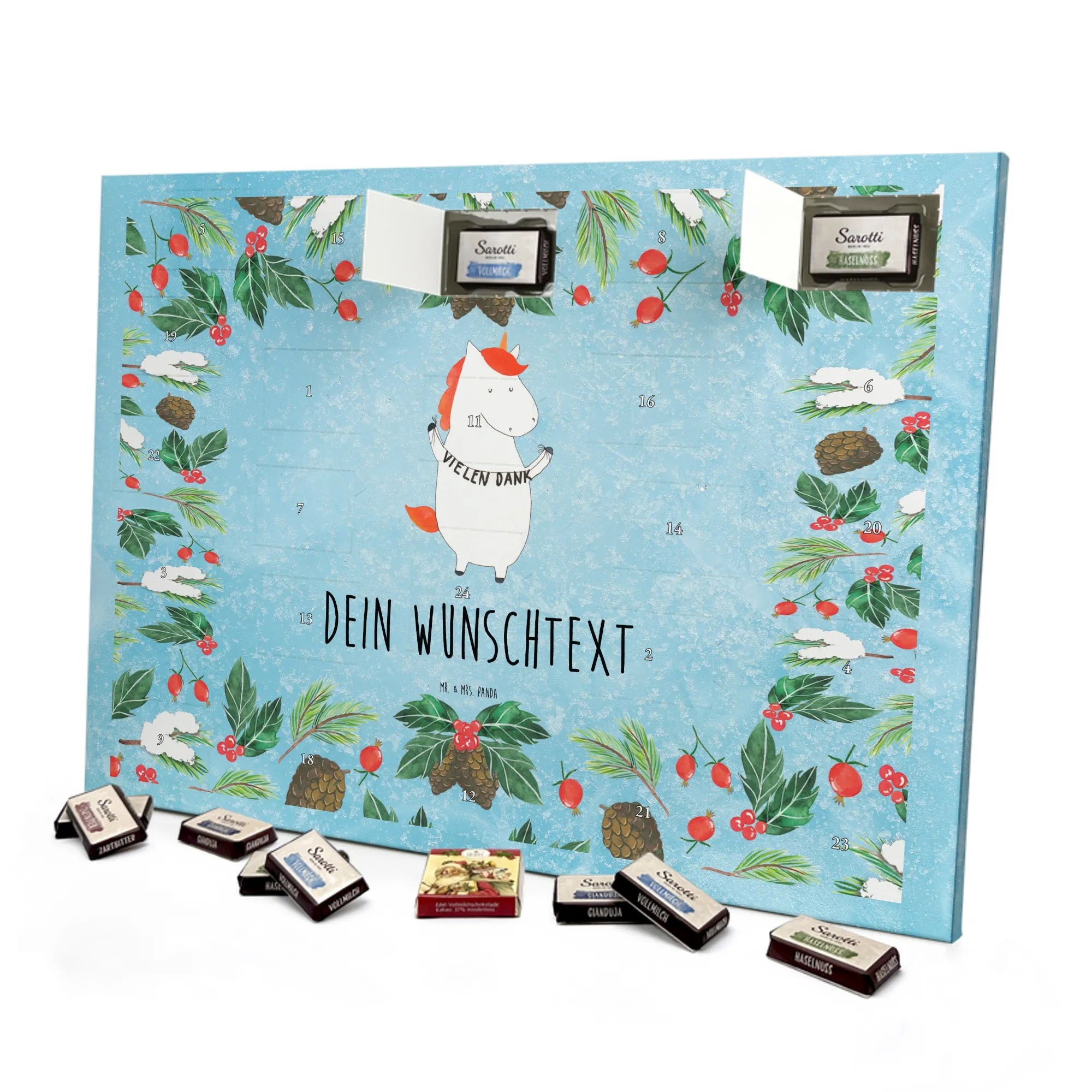 Personalisierter Schoko Adventskalender – Einhorn "Vielen Dank"