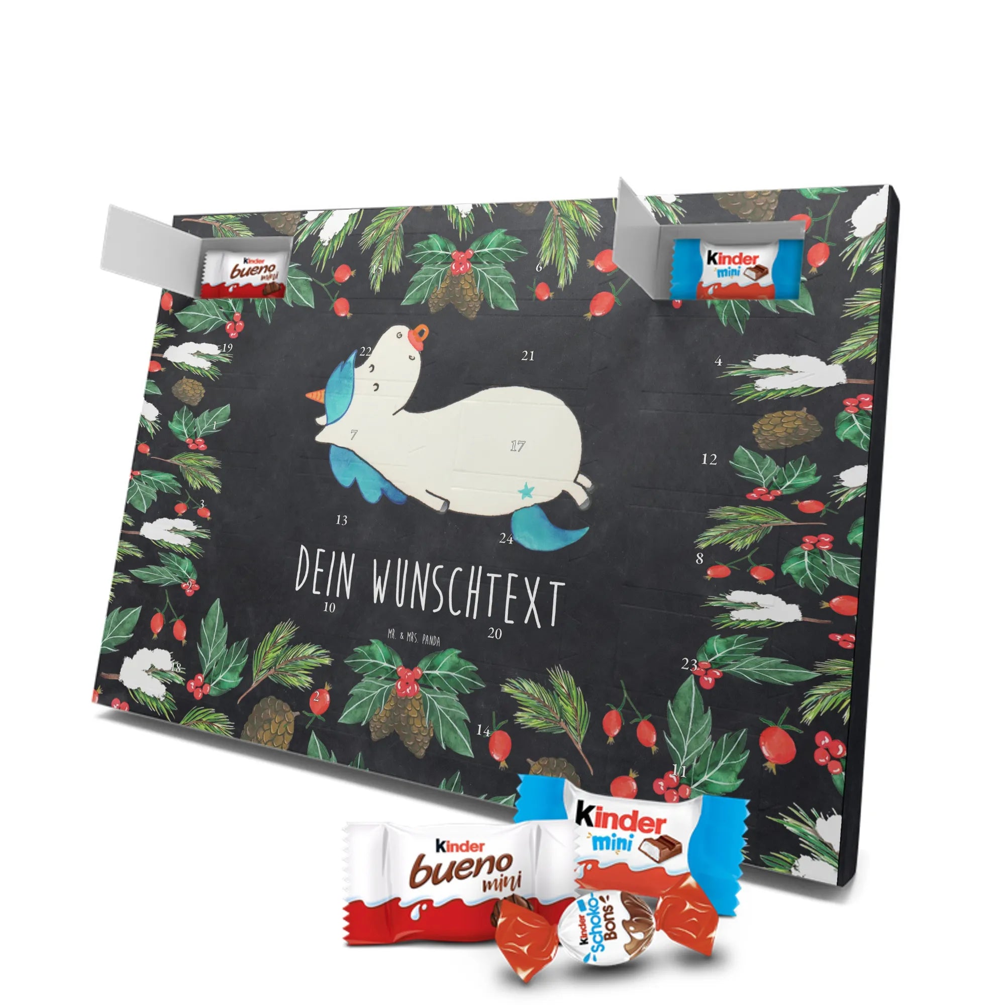 Verschenke Freude, süße Schokoladenmomente und persönliche Erinnerungen mit dem personalisierten Adventskalender Einhorn Schnullie von Mr. & Mrs. Panda – ein kleines, großes Schmuckstück für die Vorweihnachtszeit.