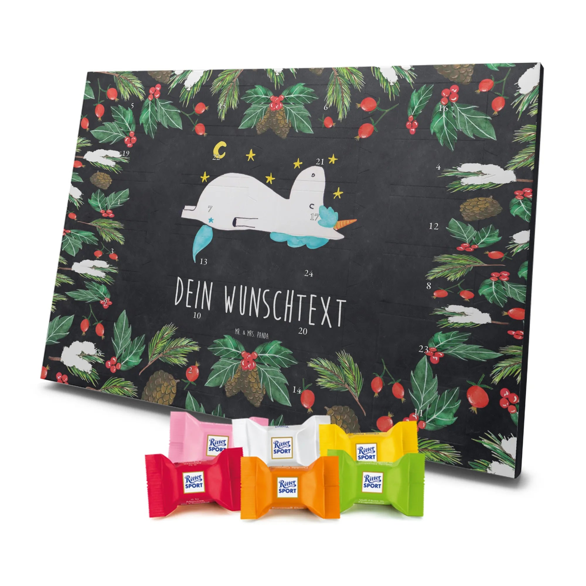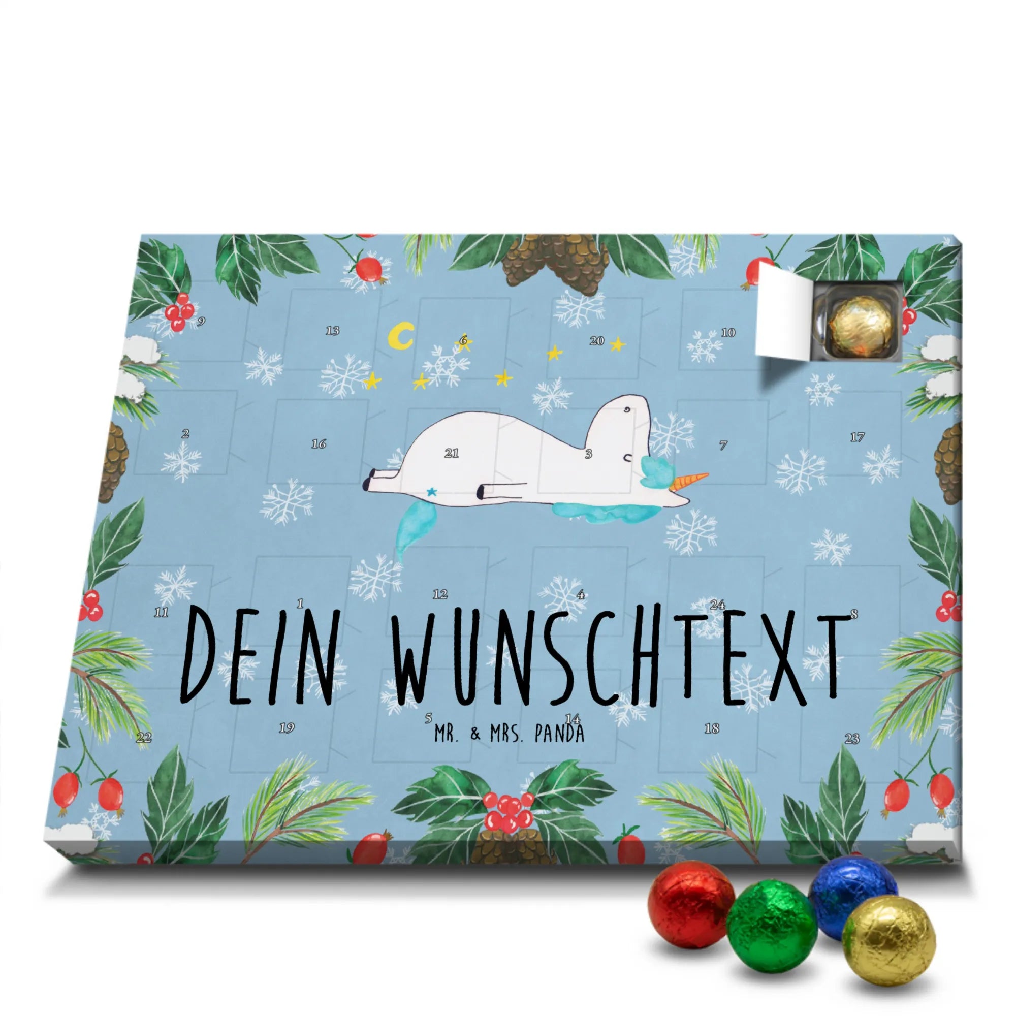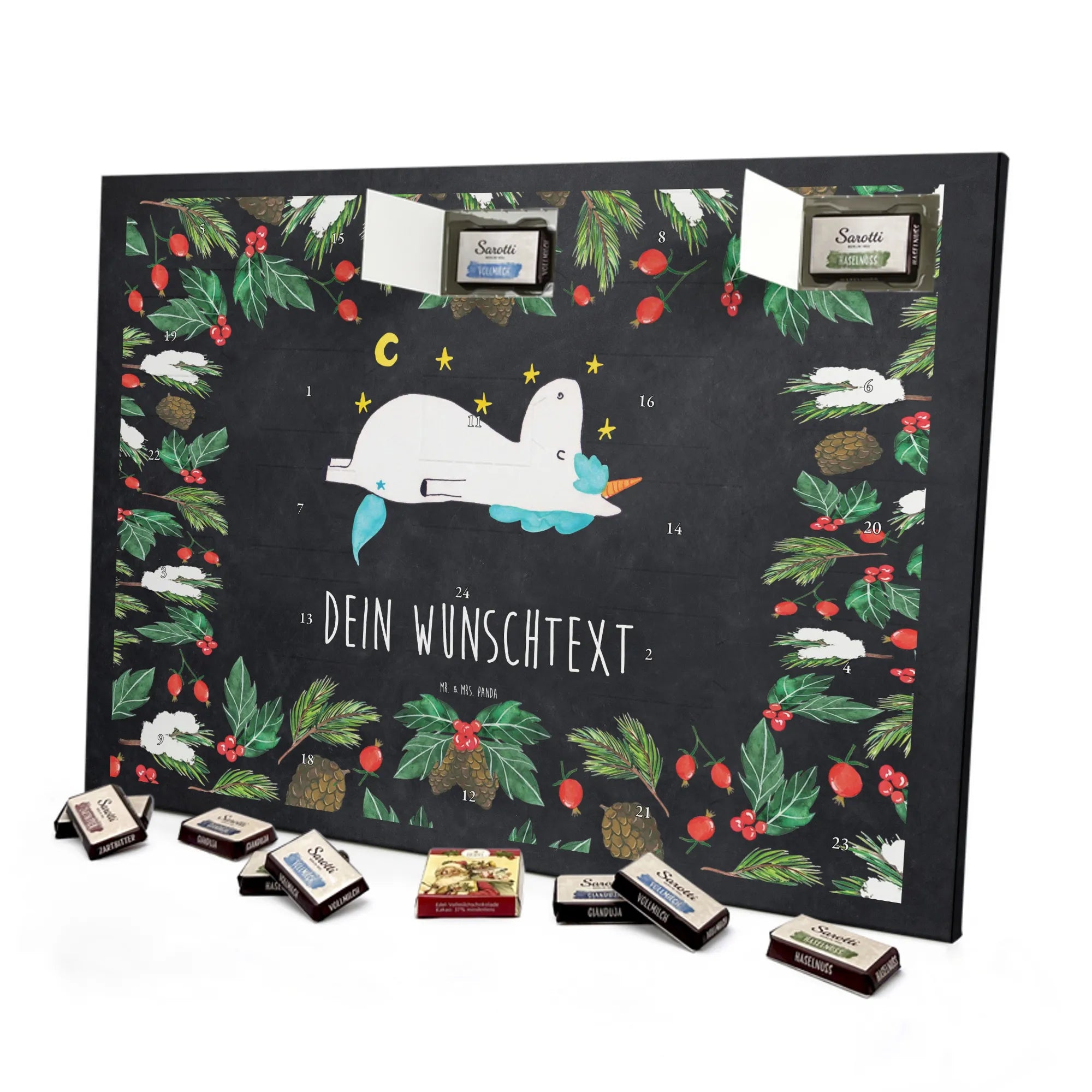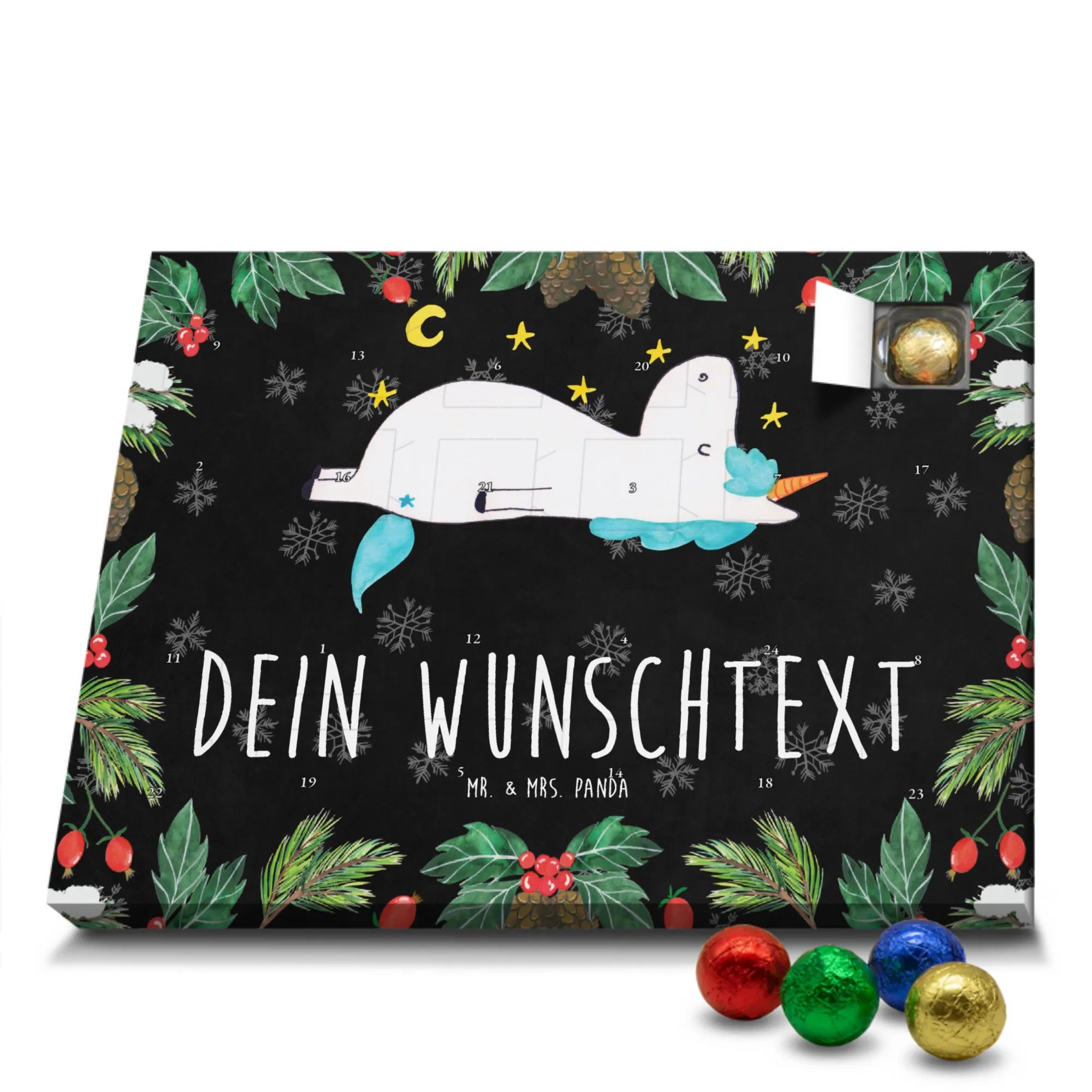 Verschenke Vorfreude, Humor und süßen Genuss mit dem Personalisierbaren Schoko Adventskalender Einhorn Sternenhimmel von Mr. & Mrs. Panda. 🎁