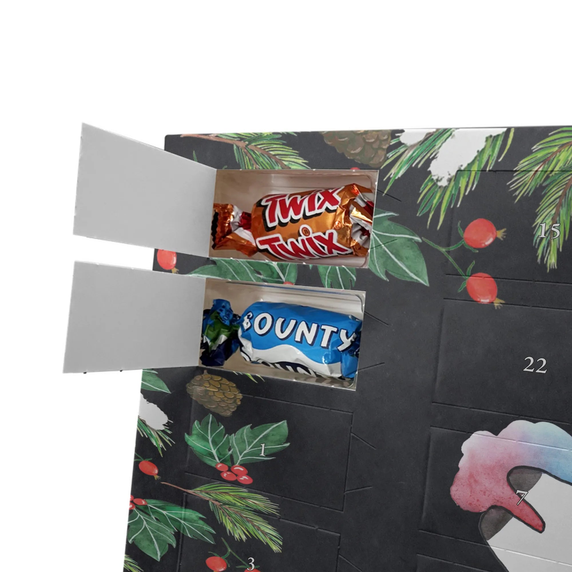 🐼 PERSONALISIERTER SCHOKO-ADVENTSKALENDER: Mit Wunschtext, bedruckt mit Mr. & Mrs. Panda Motiven, gefüllt mit MARKENNAMEN Schokolade.