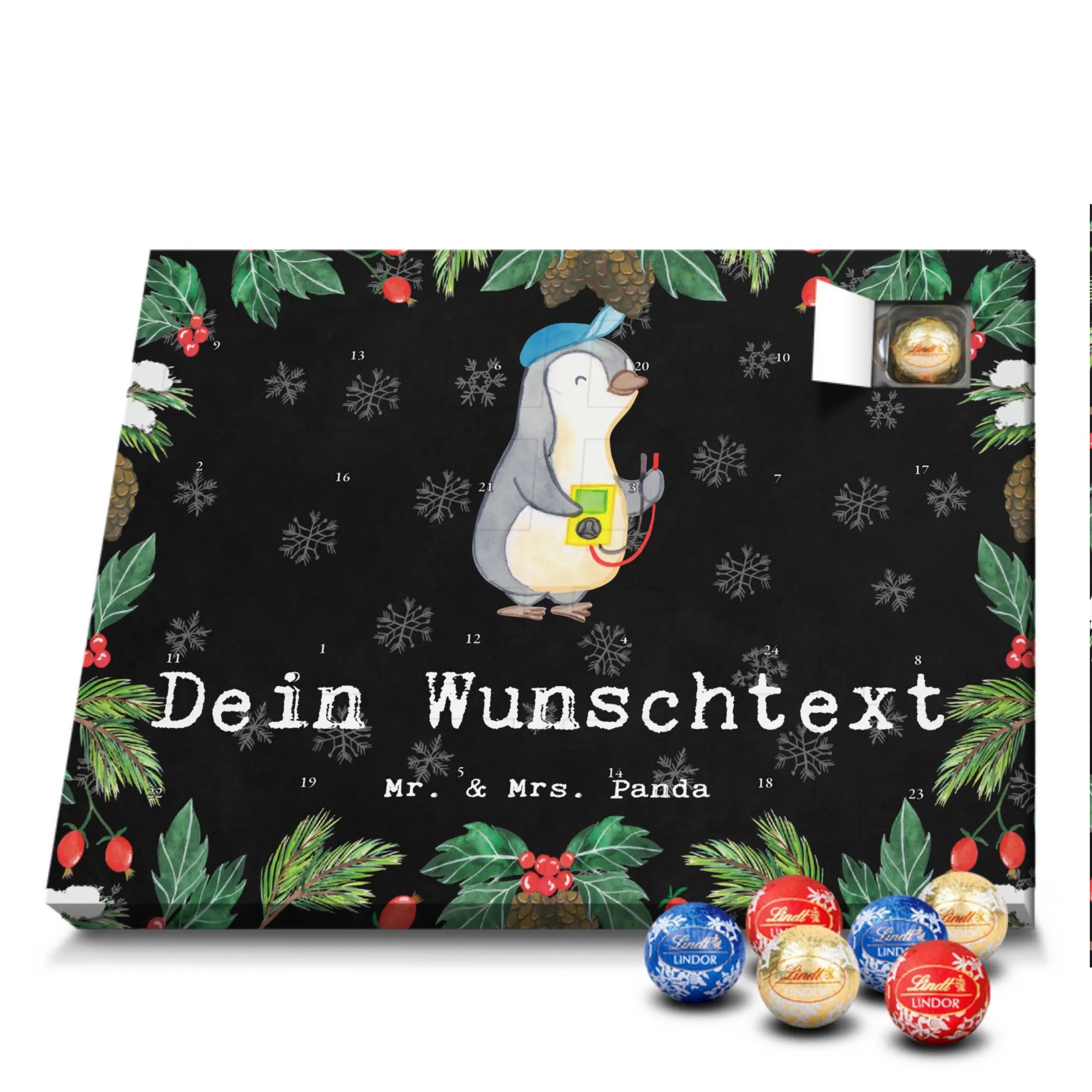 🐼 SCHOKO ADVENTSKALENDER: Personalisiert mit Namen, seidenmatte Optik, gefüllt mit Lindt Lindor.