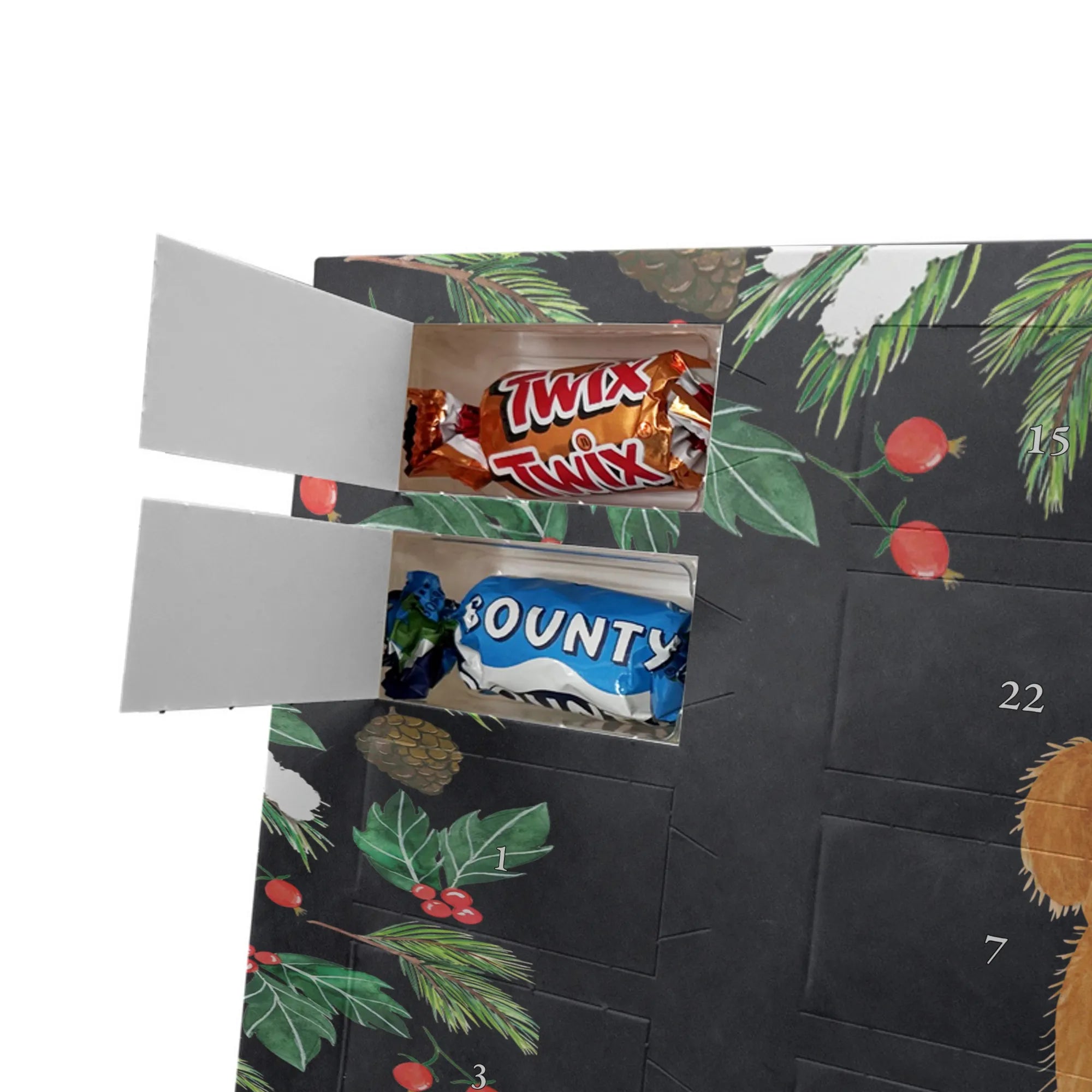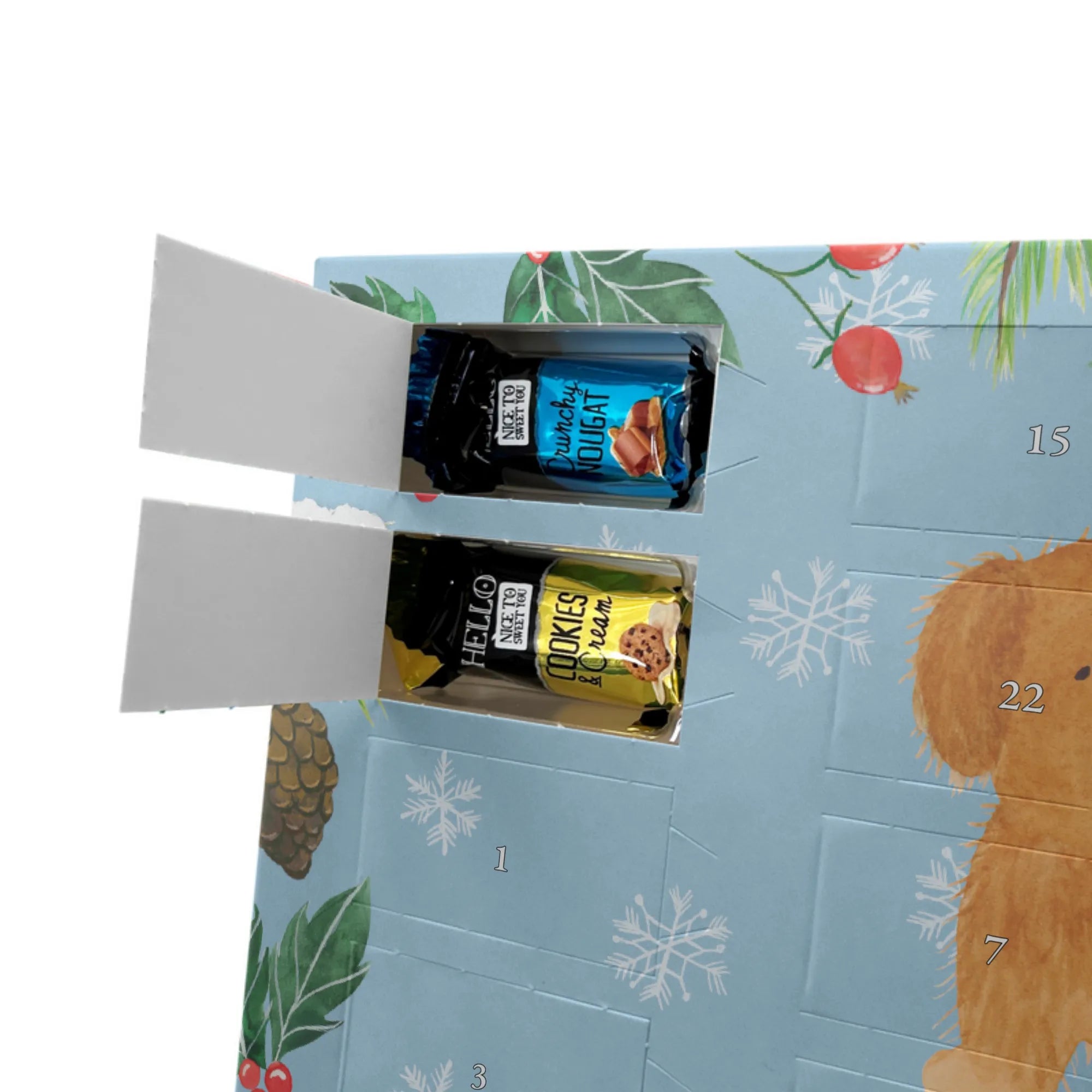 Hol dir Weihnachtszauber: Gestalte jetzt deinen personalisierten Schoko Adventskalender von Mr. & Mrs. Panda und verschenke jeden Tag ein Lächeln!