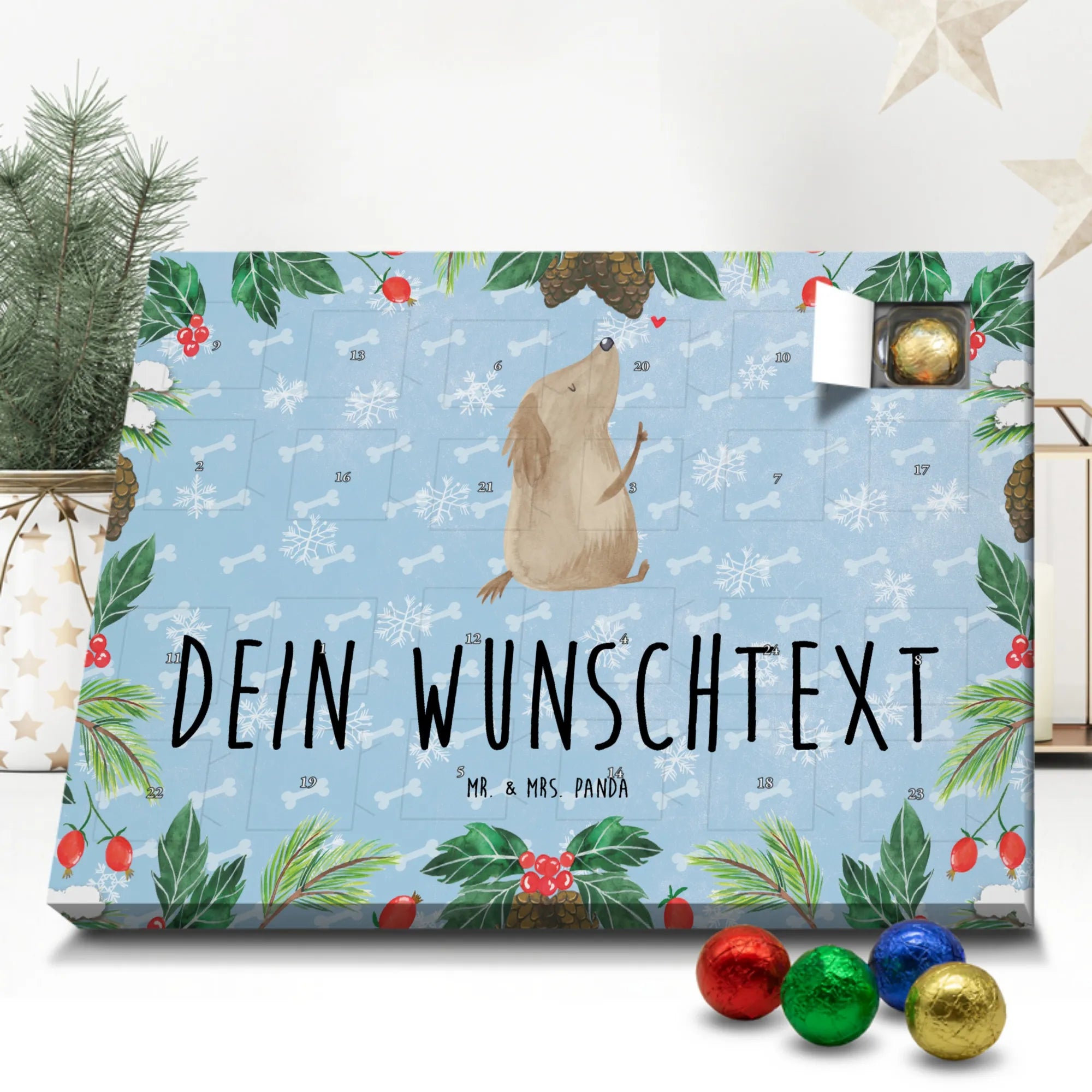 Mach Advent magisch: Gestalte jetzt deinen personalisierten Schoko Adventskalender und überrasche deine Liebsten mit einem individuellen Geschenk von Mr. & Mrs. Panda!