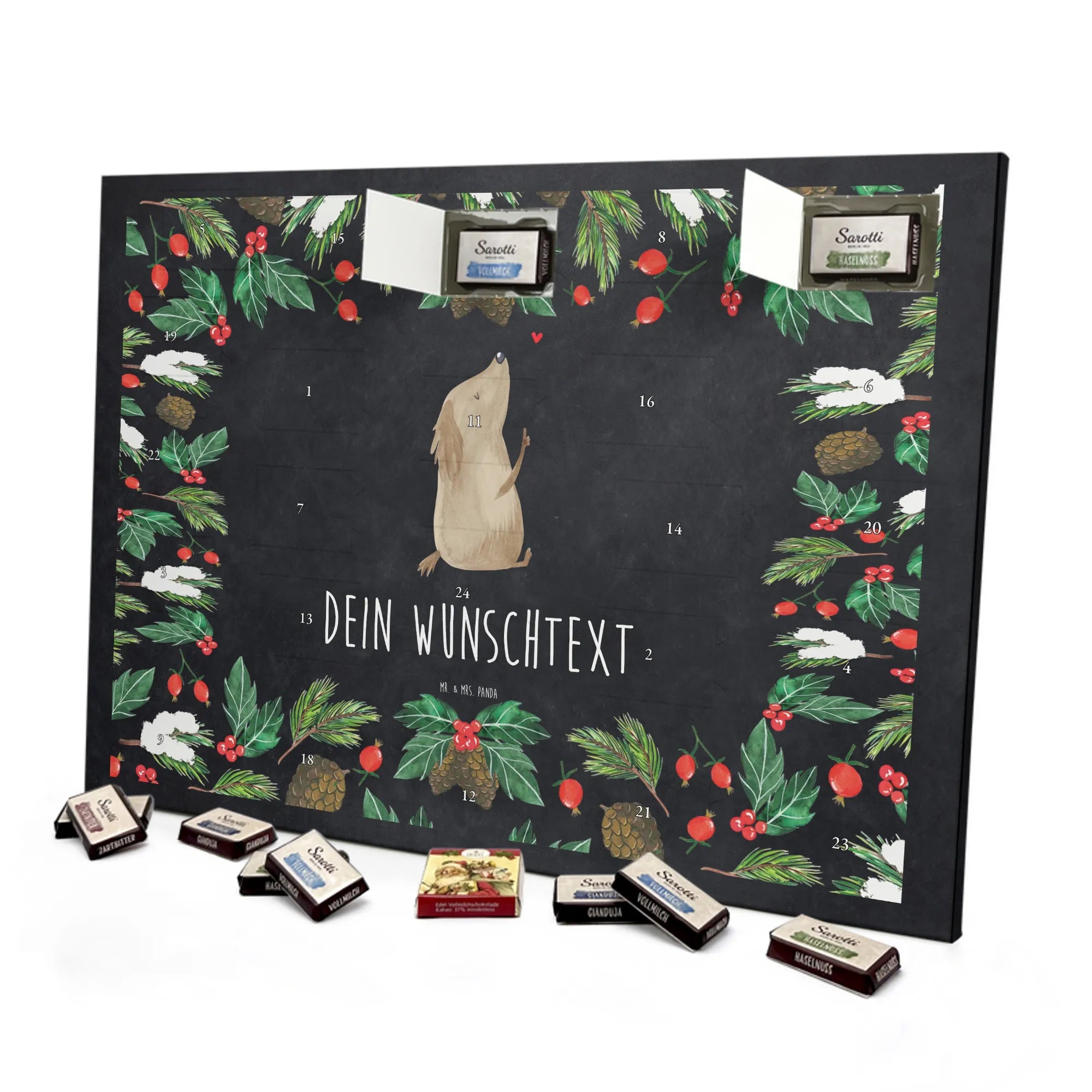 JETZT PERSONALISIEREN & VERSCHENKEN: Kreiere deinen individuellen Schokoladen Adventskalender von Mr. & Mrs. Panda – liebevoll bedruckt und gefüllt mit MARKENNAMEN Schokolade!