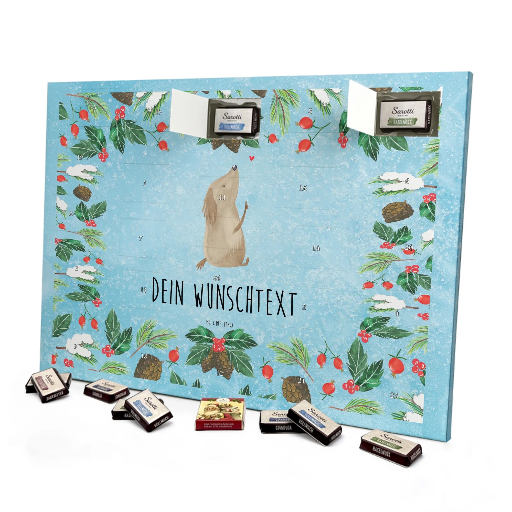 Gestalte Freude: Personalisiere deinen Schoko-Kalender und überrasche mit einem individuellen Adventsgruß von Mr. & Mrs. Panda!