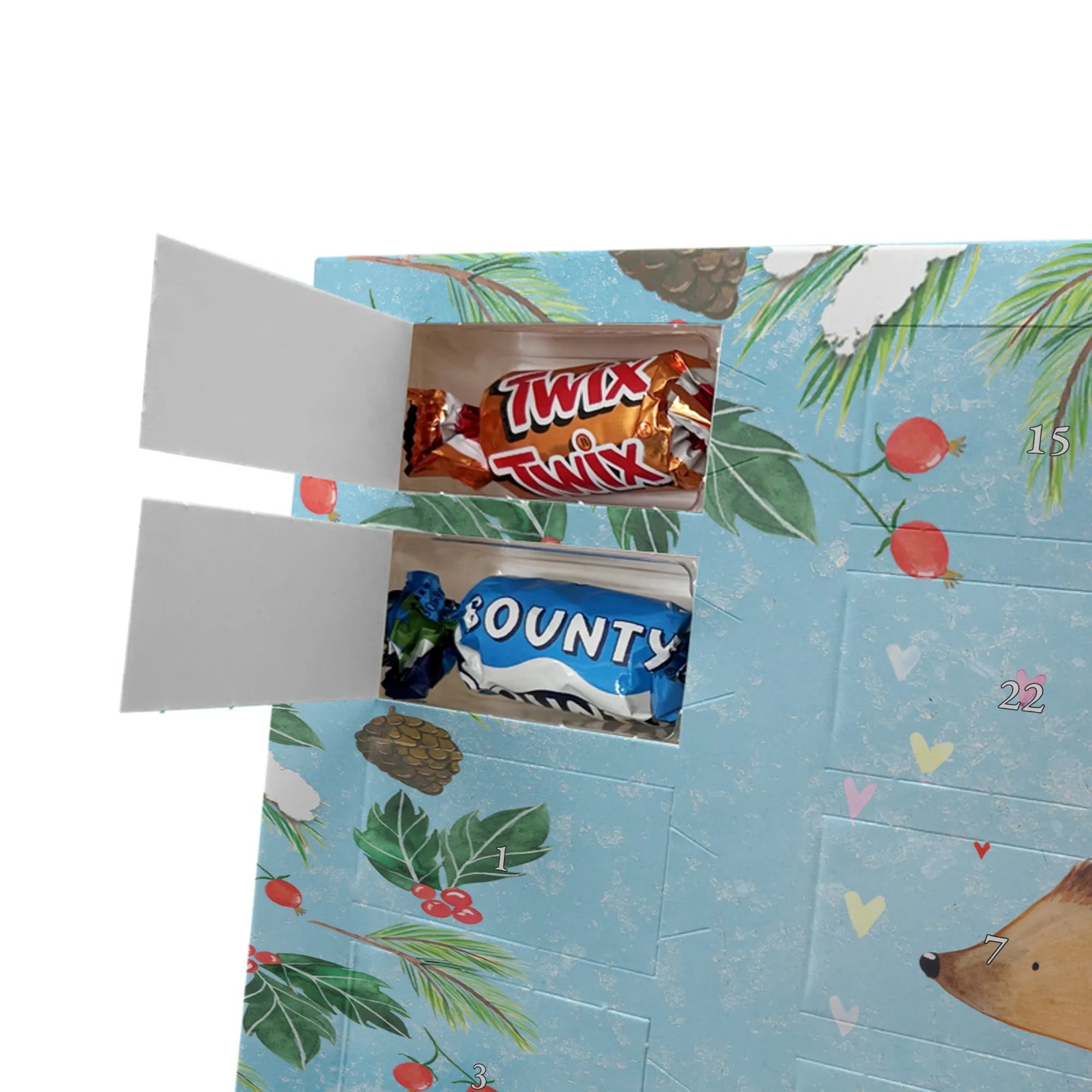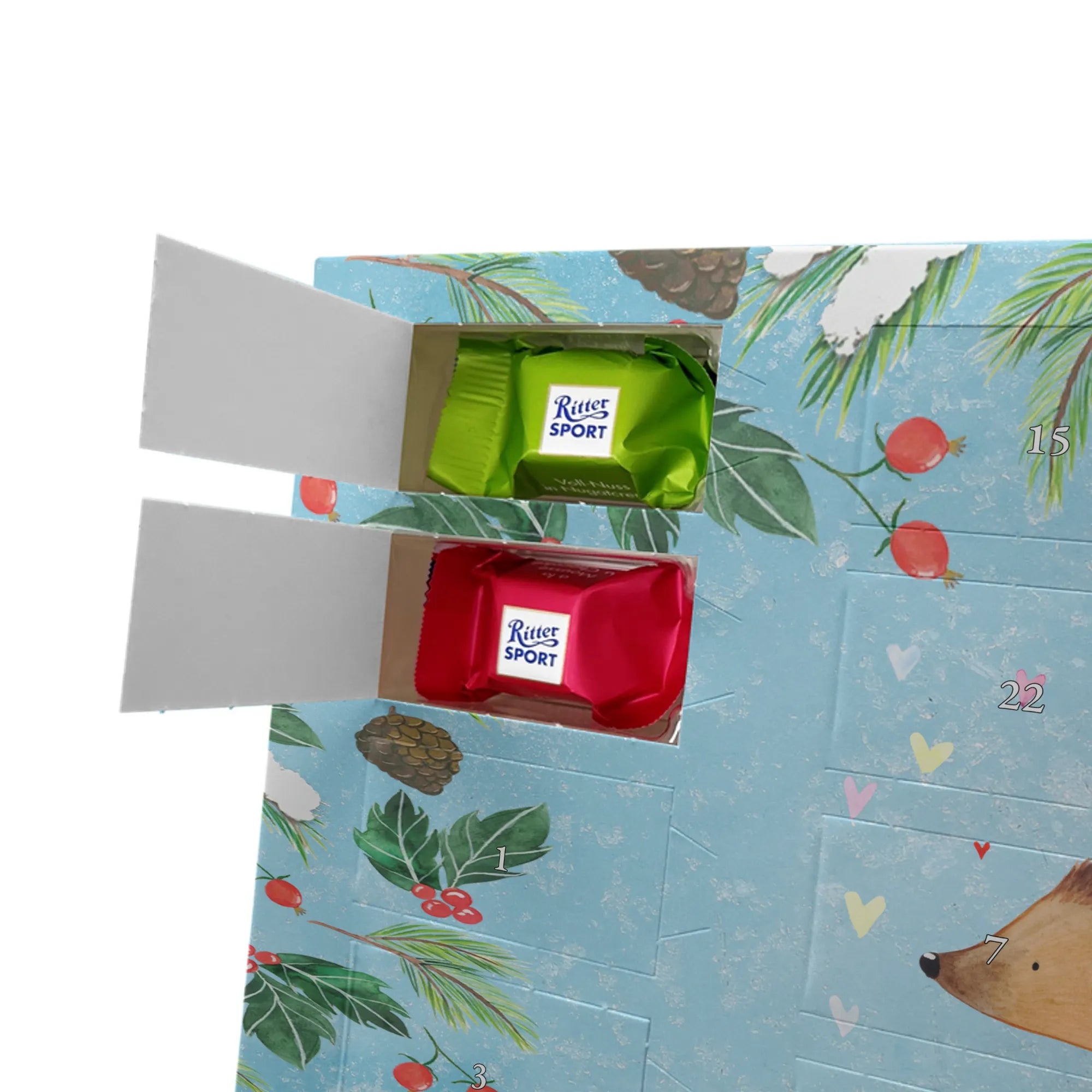 adventskalender personalisiert Igel Herzen - Classic - Eisblau