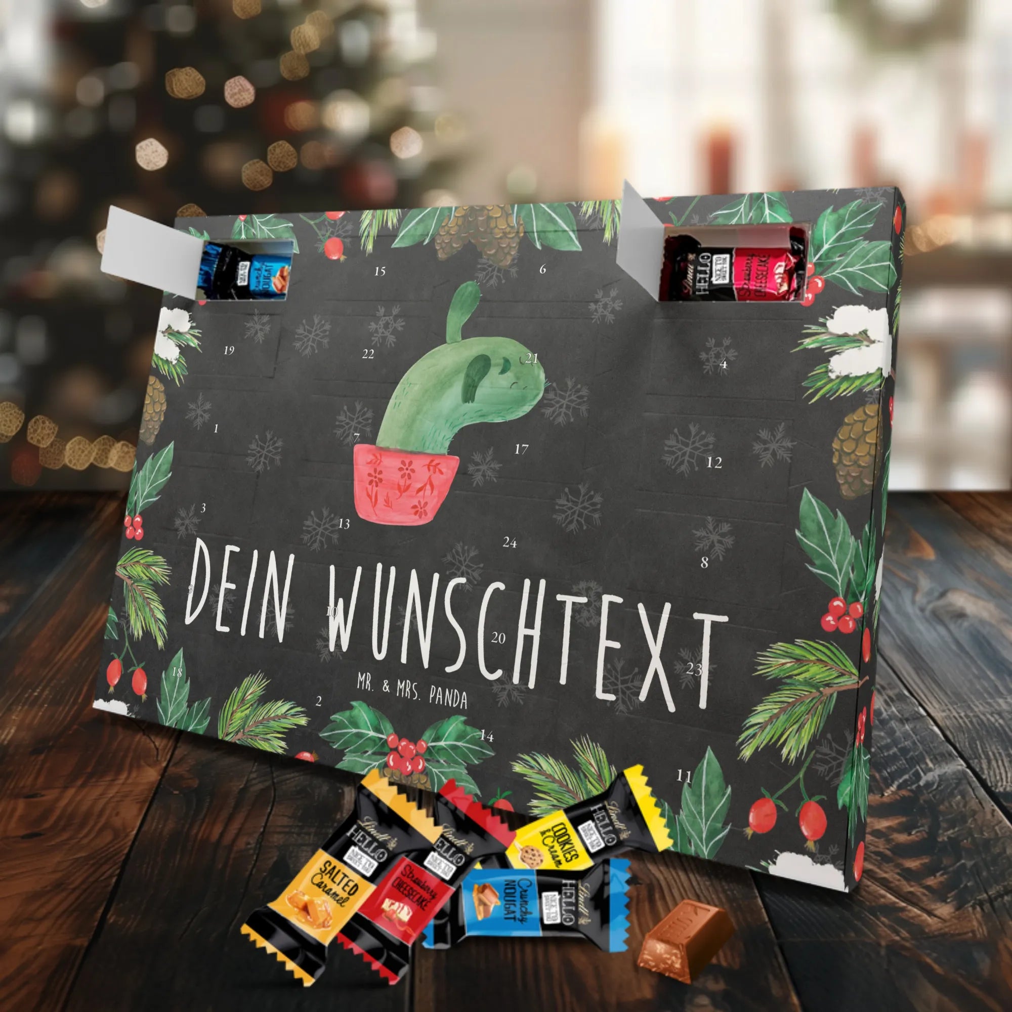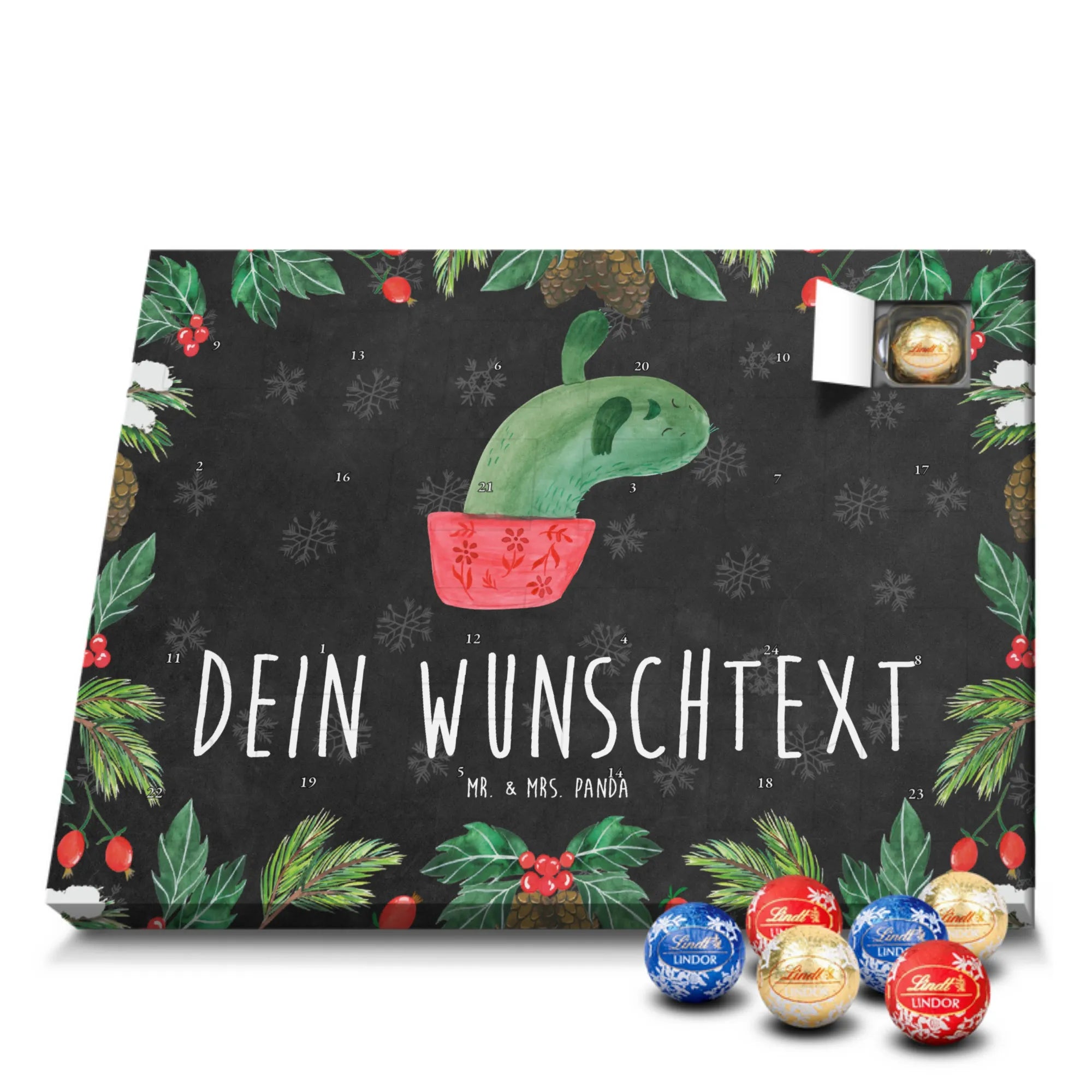 🐼 PERSONALISIERTER KALENDER: Individuell mit Namen, seidenmatte Optik, 233x178x24 mm, gefüllt mit Lindt Lindor Schokolade.