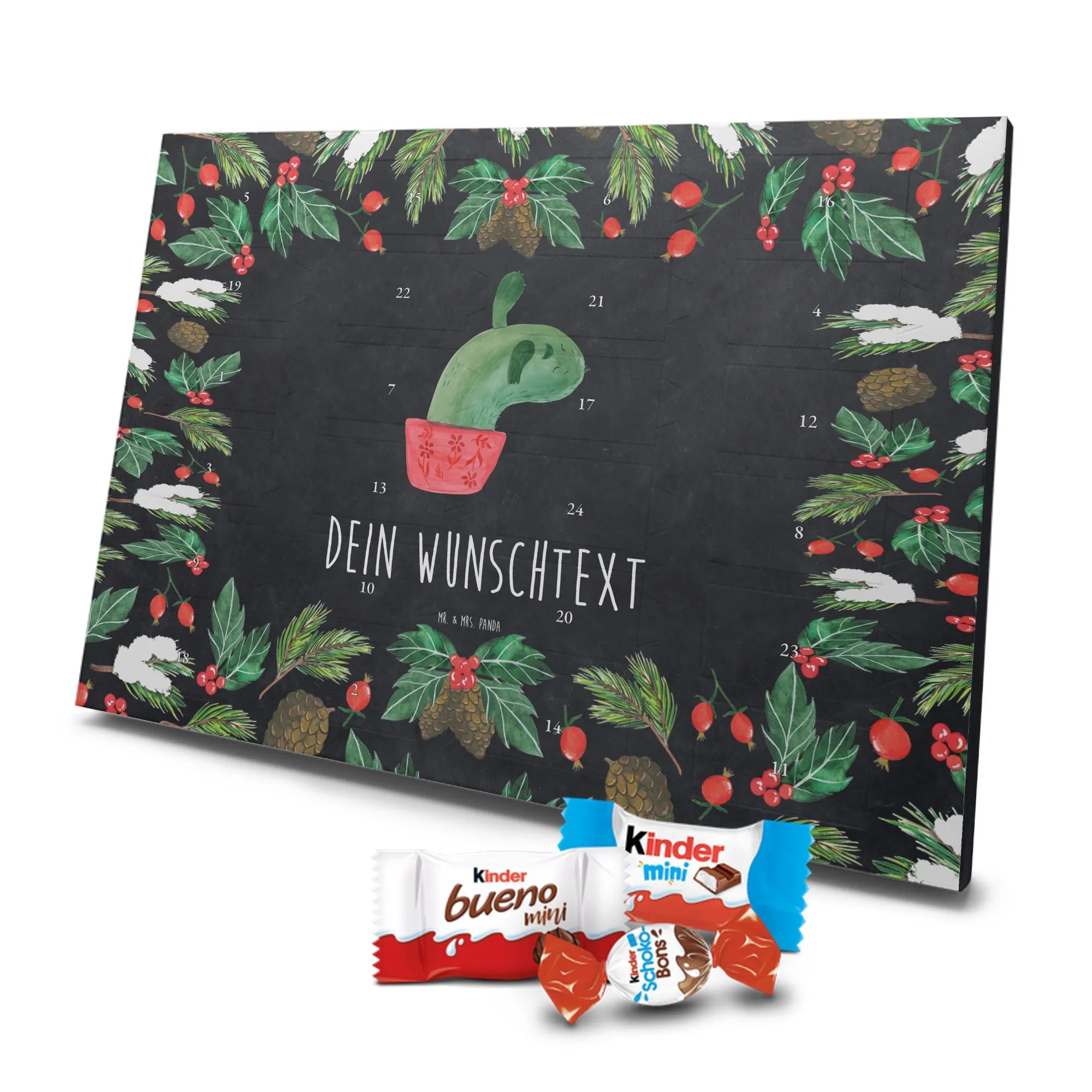 🐼 Personalisierter Adventskalender mit Wunschtext, seidenmatte Oberfläche, bedruckte Seitenflächen.