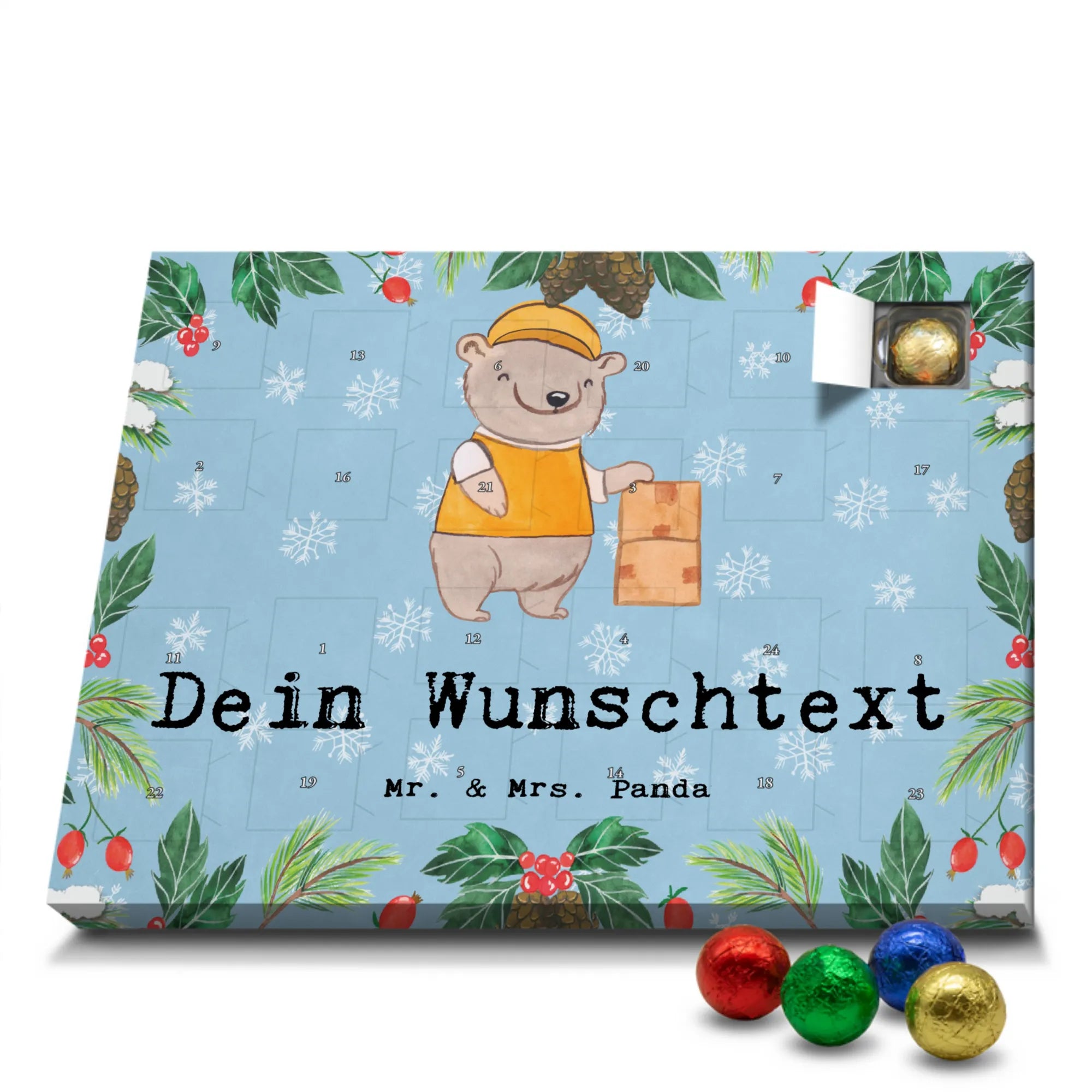 Mach Advent magisch: Gestalte jetzt deinen personalisierten Schoko Adventskalender und überrasche deine Liebsten mit einem individuellen Geschenk von Mr. & Mrs. Panda!