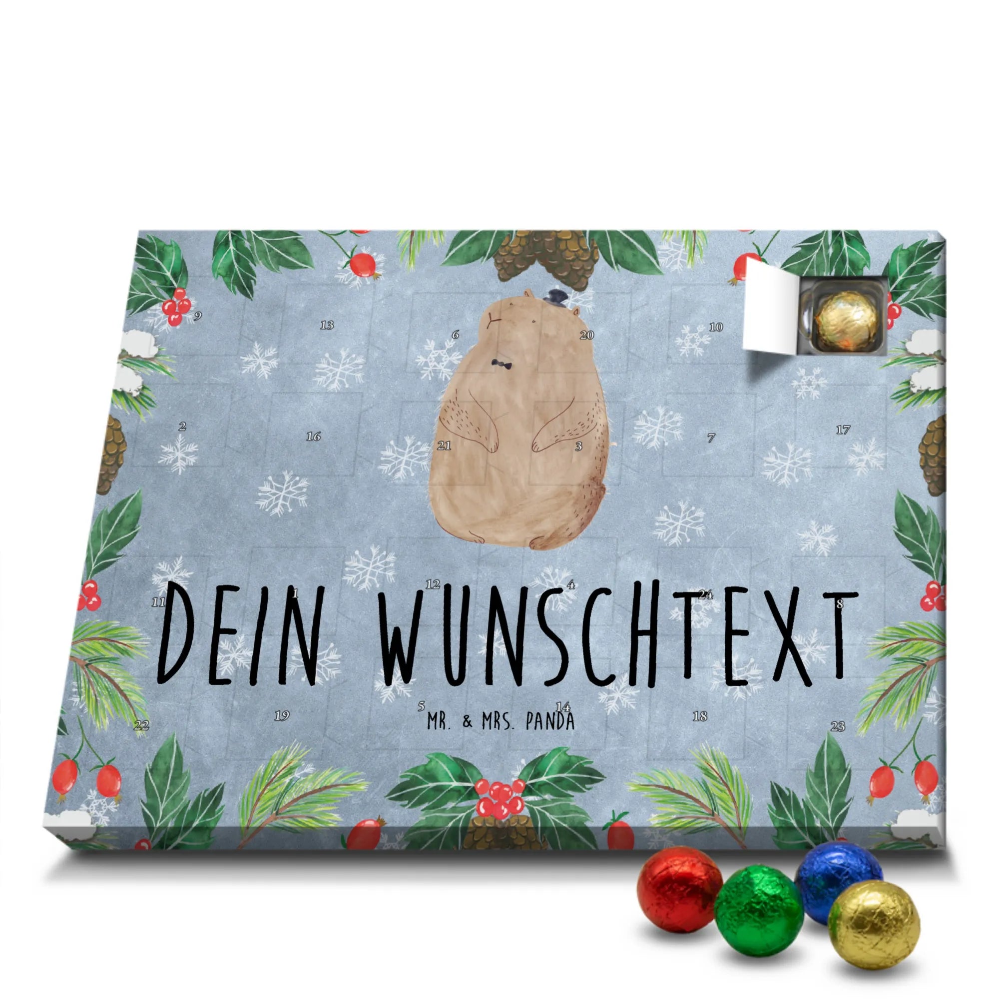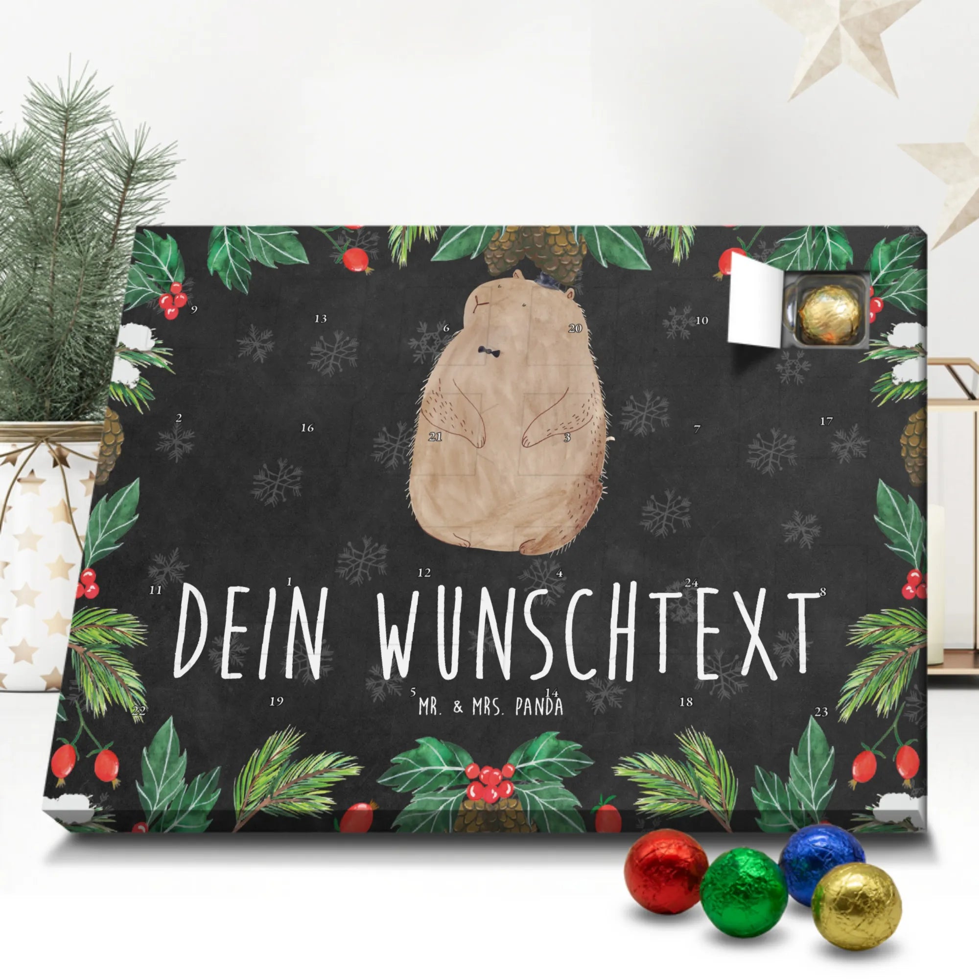 🐼 PERSONALISIERTER SCHOKO-ADVENTSKALENDER: Mit Wunschtext, bedruckt mit Mr. & Mrs. Panda Motiven, gefüllt mit MARKENNAMEN Schokolade.