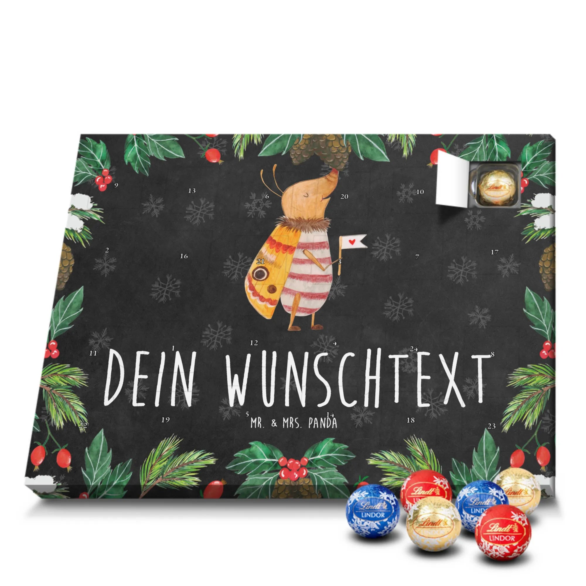 🐼 Schoko Adventskalender personalisiert mit Wunschtext, seidenmatt, gefüllt mit Lindt Hello.