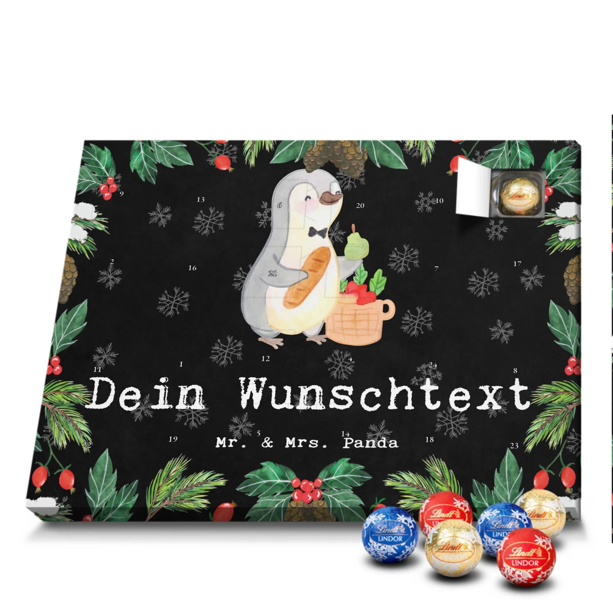🐼 Schoko Adventskalender personalisiert mit Wunschtext, seidenmatt, gefüllt mit Lindt Hello.