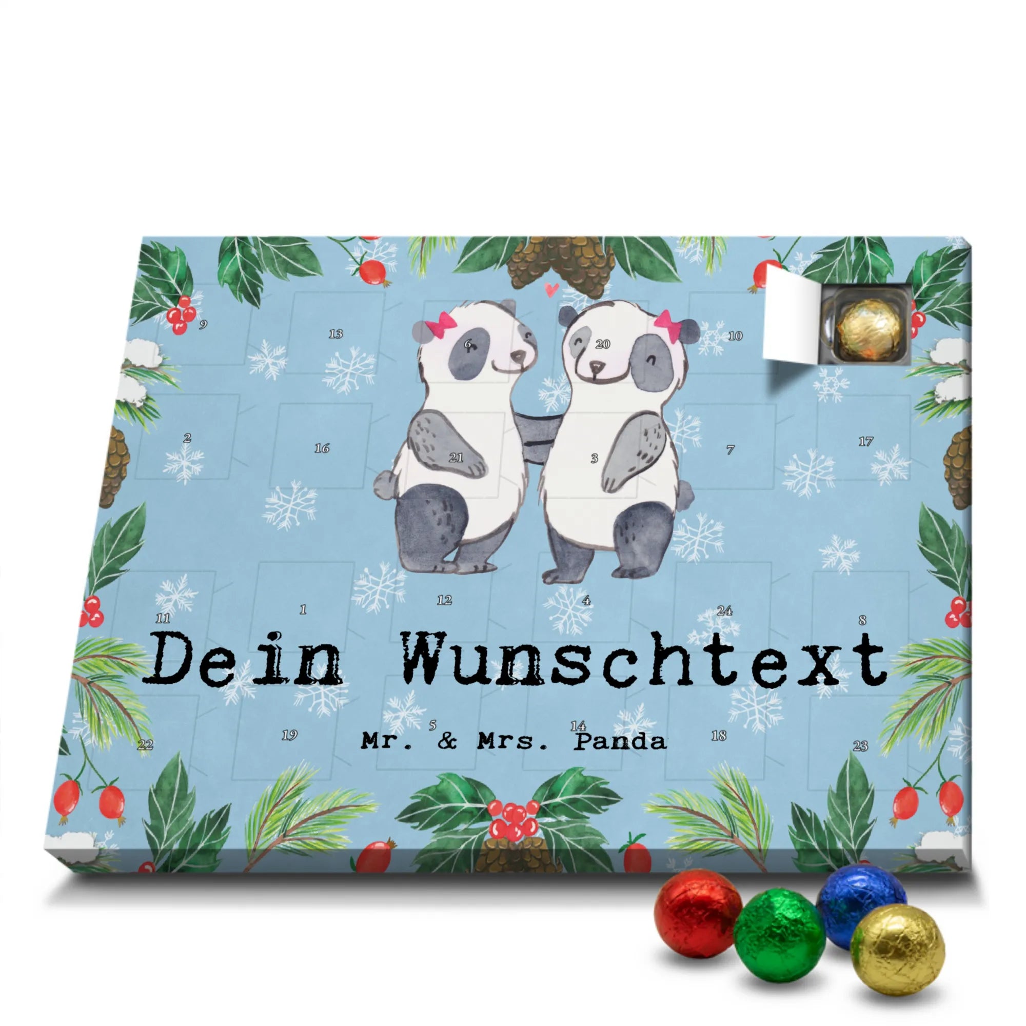 🐼 PERSONALISIERTER SCHOKO-ADVENTSKALENDER: Mit Wunschtext, bedruckt mit Mr. & Mrs. Panda Motiven, gefüllt mit MARKENNAMEN Schokolade.