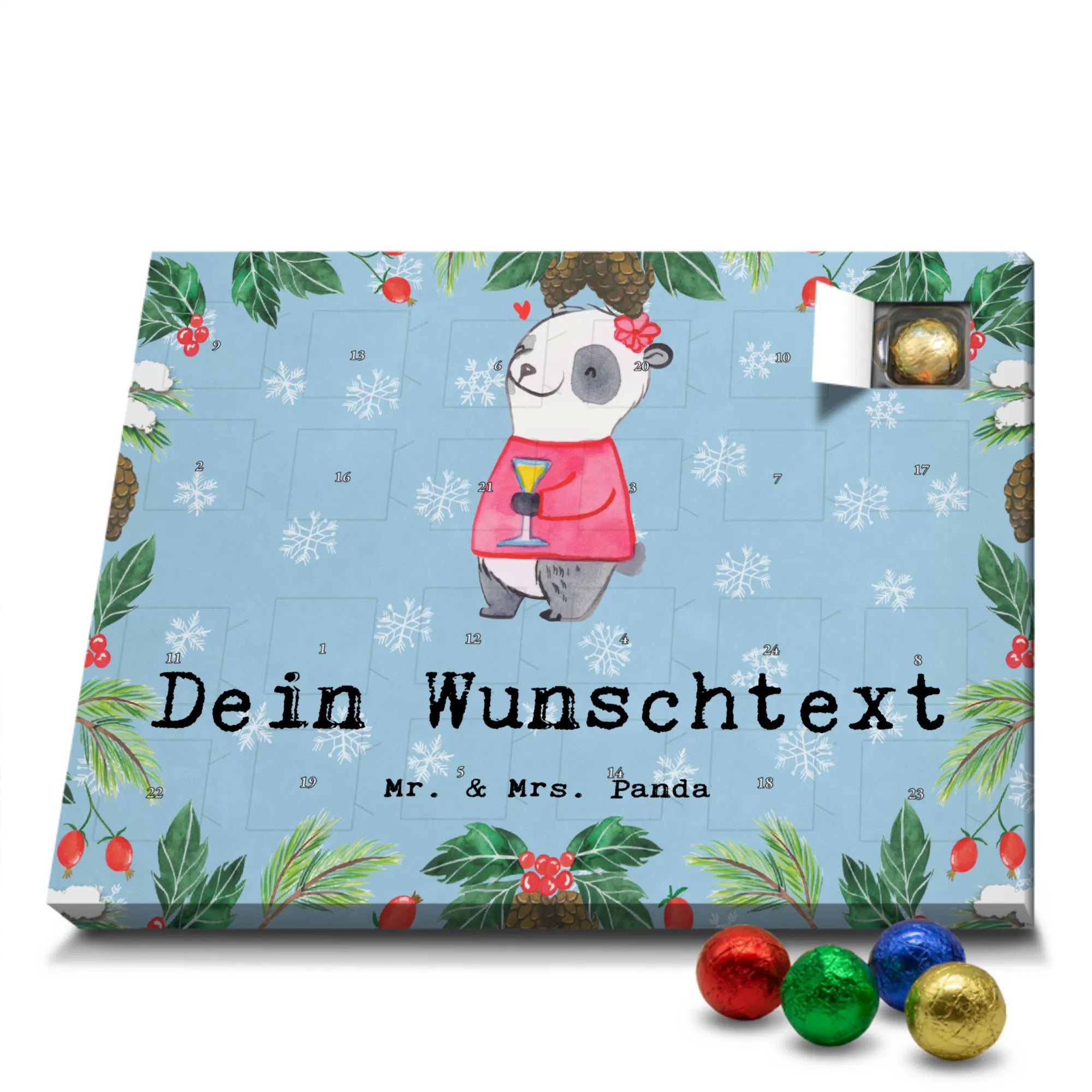 Mach Advent magisch: Gestalte jetzt deinen personalisierten Schoko Adventskalender und überrasche deine Liebsten mit einem individuellen Geschenk von Mr. & Mrs. Panda!