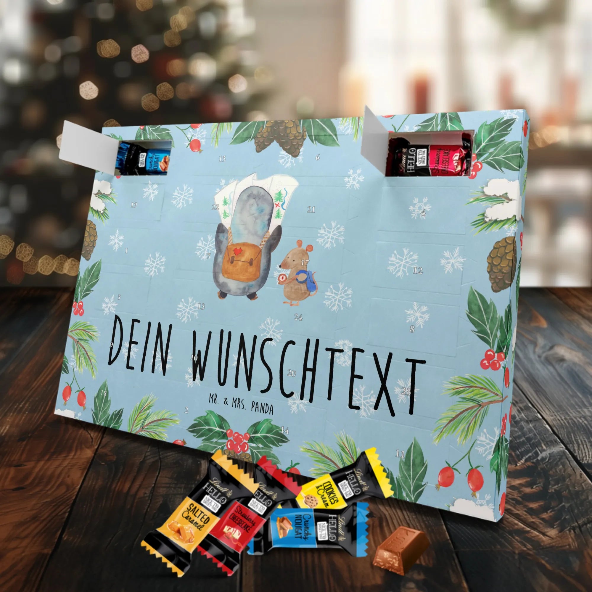 Adventskalender mit Namen Pinguin & Maus Wanderer - Classic - Eisblau