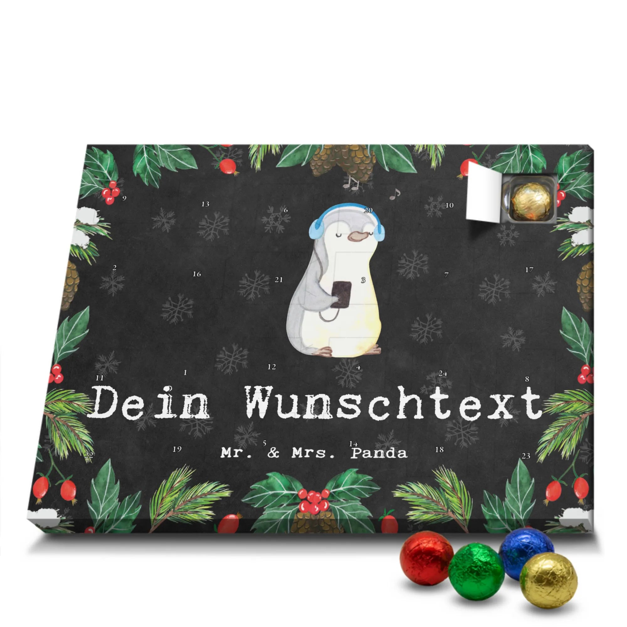 Gestalte Freude: Personalisiere deinen Schoko-Kalender und überrasche mit einem individuellen Adventsgruß von Mr. & Mrs. Panda!