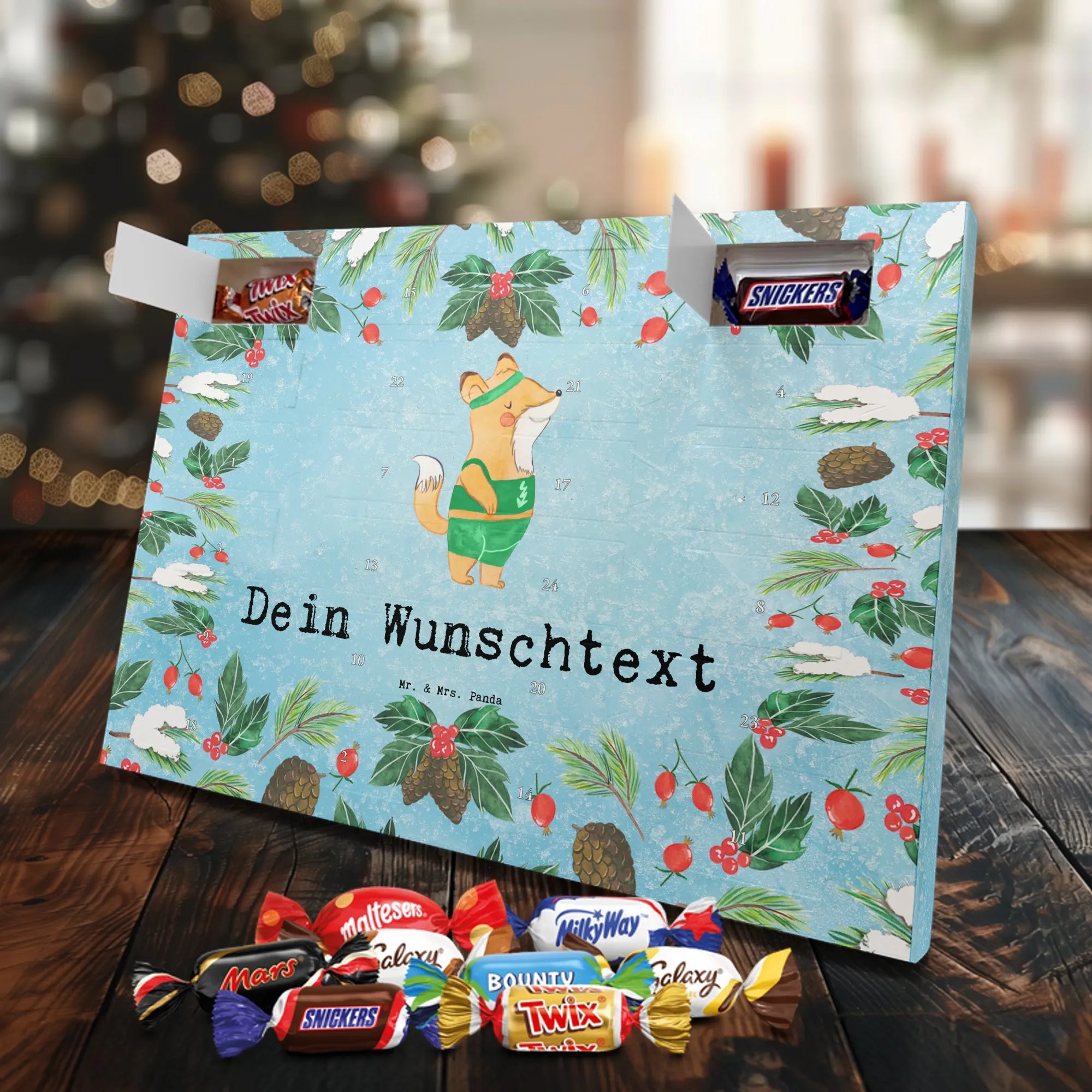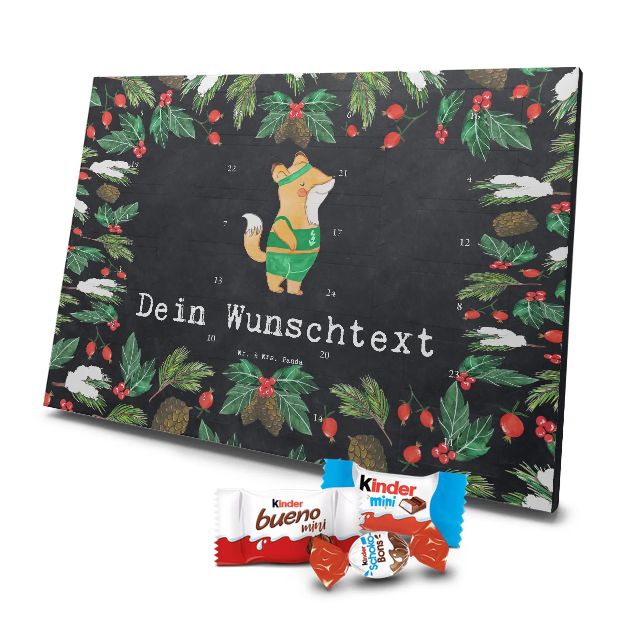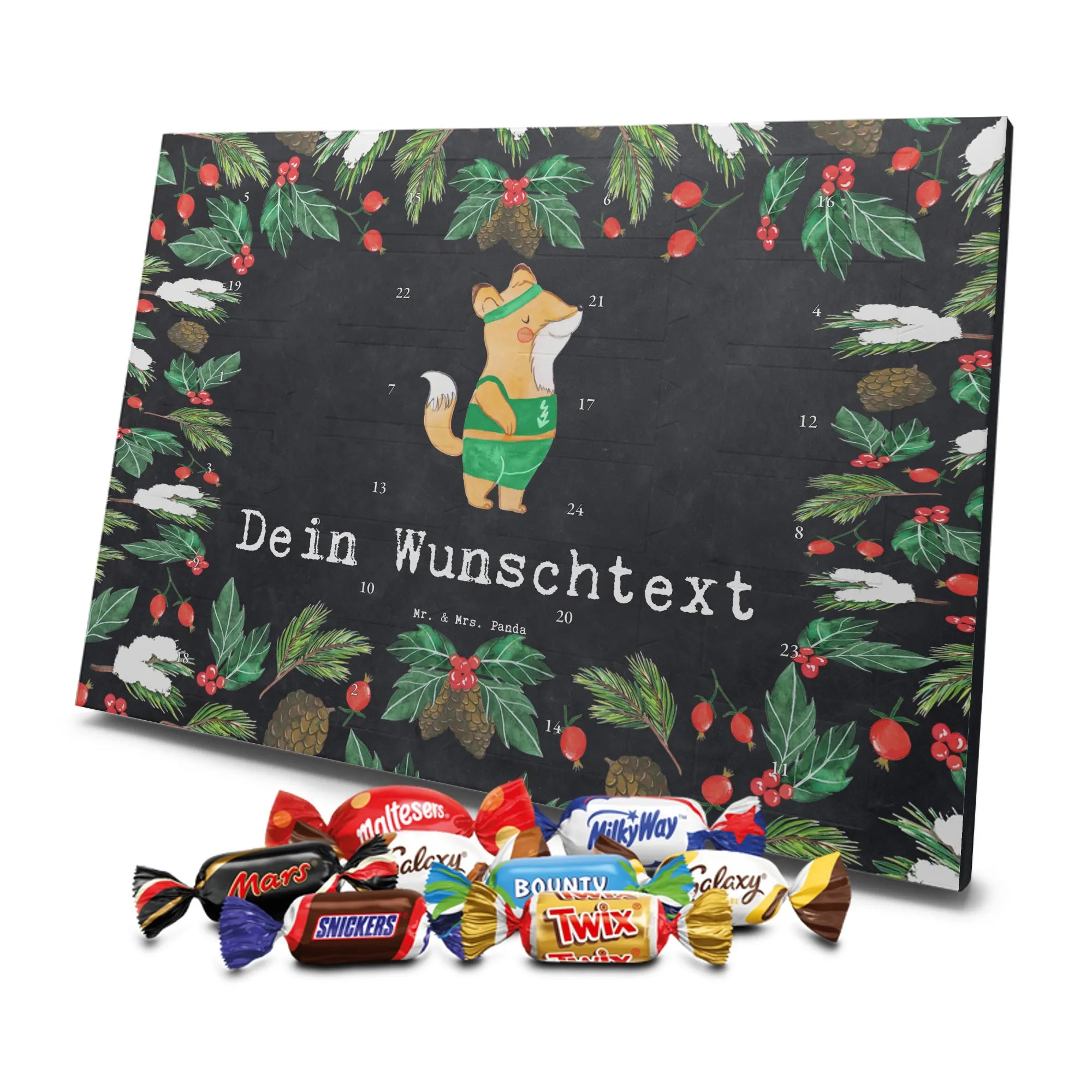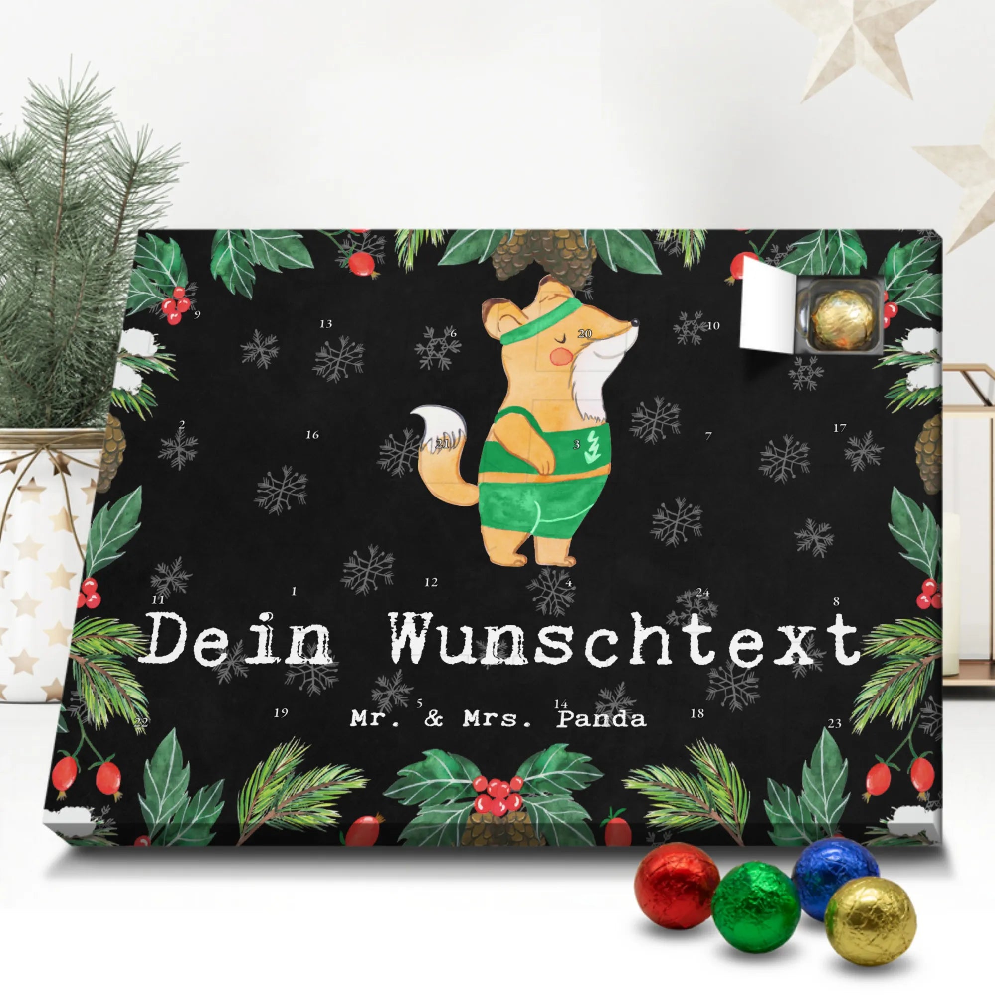 Überrasche deinen Sportlehrer, deine Kollegin oder den Arbeitskollegen mit einem liebevoll gestalteten Adventskalender von Mr. & Mrs. Panda. Das Motiv zeigt einen süßen Fuchs im Sport-Outfit und den herzlichen Slogan „Sportlehrer aus Leidenschaft“ – perfekt als personalisiertes Geschenk oder Adventskalender mit Namen. 🎁