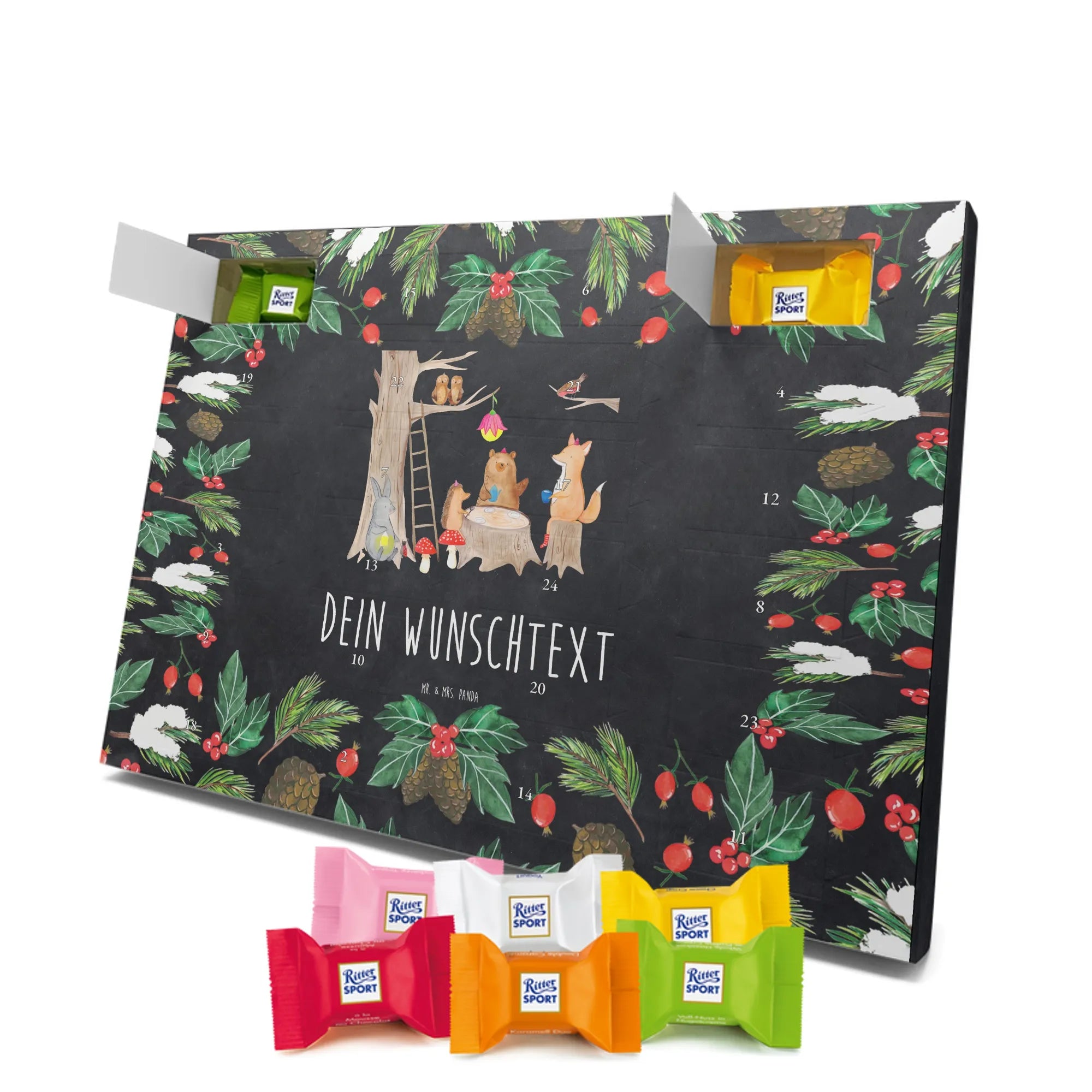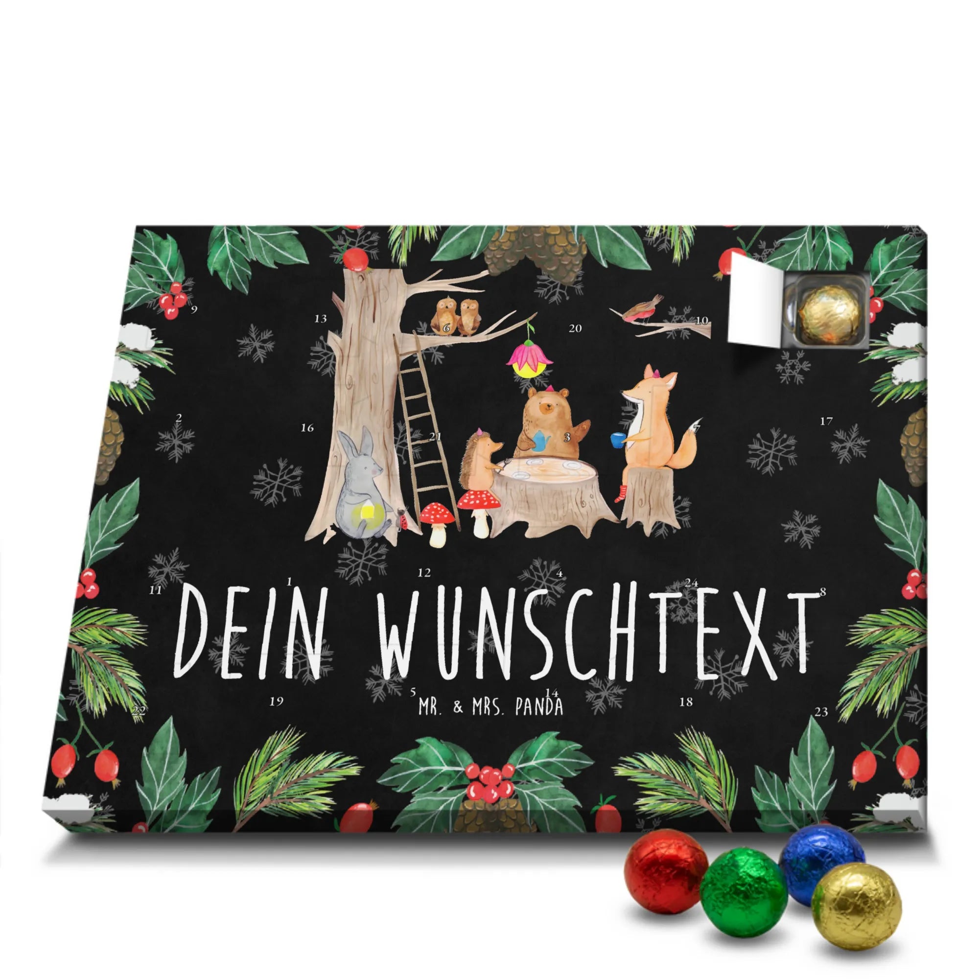 Gestalte Freude: Personalisiere deinen Schoko-Kalender und überrasche mit einem individuellen Adventsgruß von Mr. & Mrs. Panda!