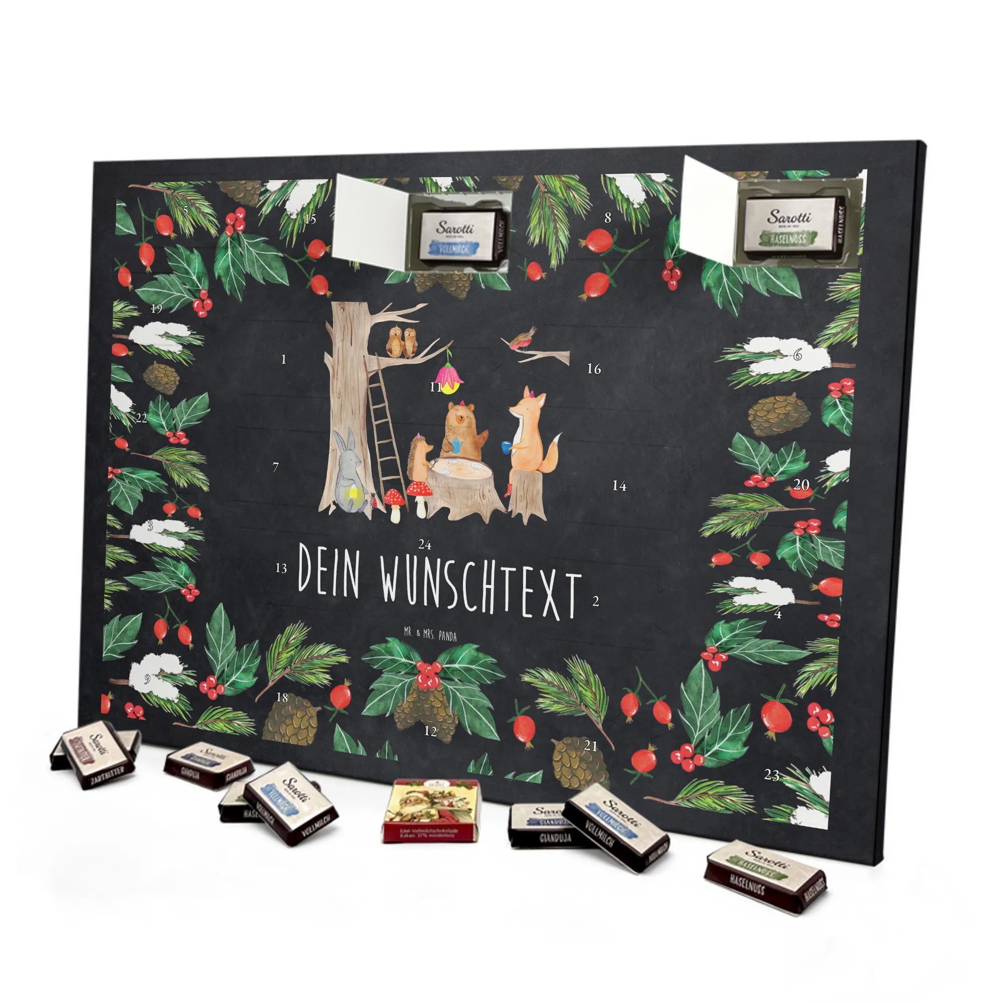JETZT PERSONALISIEREN & VERSCHENKEN: Kreiere deinen individuellen Schokoladen Adventskalender von Mr. & Mrs. Panda – liebevoll bedruckt und gefüllt mit MARKENNAMEN Schokolade!