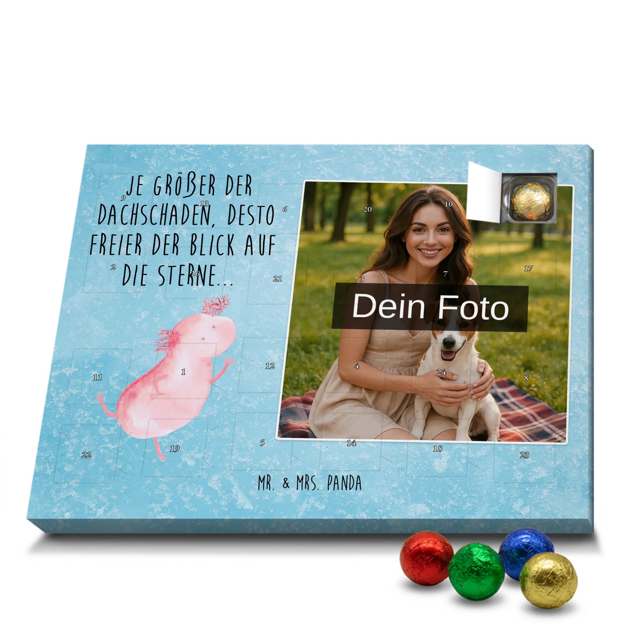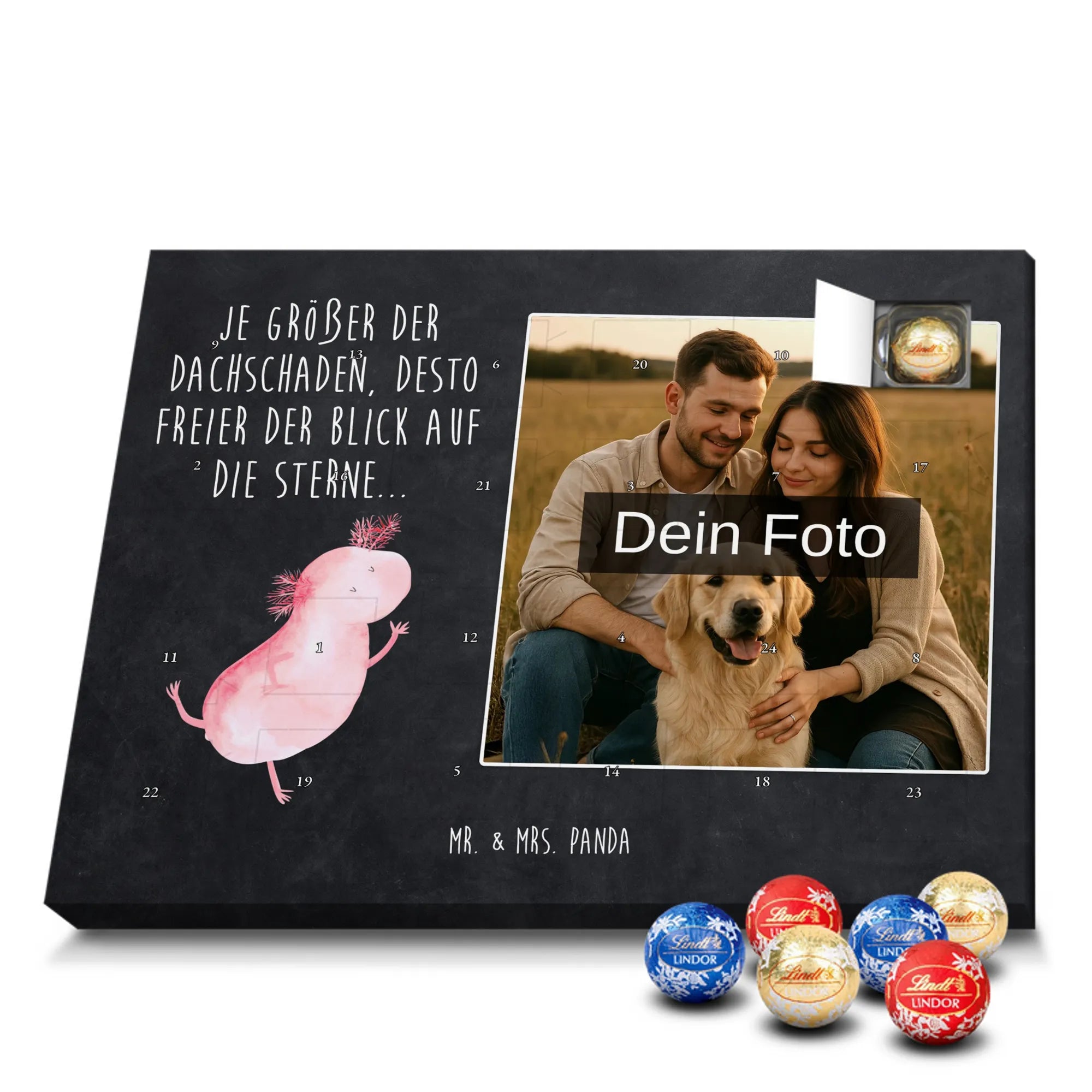Mach die Adventszeit persönlich mit unserem Personalisiertes Schoko Foto-Adventskalender von Mr. & Mrs. Panda. Dieser Kalender kombiniert dein Lieblingsfoto mit unseren fröhlichen Illustrationen und liebevollen Sprüchen – perfekt als Geschenk für Partner, Familie oder Freunde. Für ein optimales Druckergebnis bitte ein hochauflösendes Bild verwenden und den Bildausschnitt so wählen, dass wichtige Details nicht verloren gehen. Beachte, dass wir Fotos nicht nachbearbeiten oder zuschneiden; lade nur Bilder hoch, für die du die Rechte besitzt. Die hochwertige Verarbeitung beinhaltet eine seidenmatte Oberflächenveredelung und bedruckte Seitenflächen, außerdem ist der Kalender robust und kann aufgehängt oder aufgestellt werden. Maße: 233 mm x 178 mm x 24 mm. Gefüllt mit Lindt Lindor Markenschokolade: 24 einzeln verpackte Kugeln in den Sorten Vollmilch, Feinherb und Weiße Schokolade. Inhaltsstoffe und Allergene sind angegeben; es kann Haselnüsse und Mandeln enthalten. Hinweis: Personalisierte Foto-Artikel sind vom Umtausch ausgeschlossen. Ein süßer, persönlicher Adventsgruß von Mr. & Mrs. Panda.