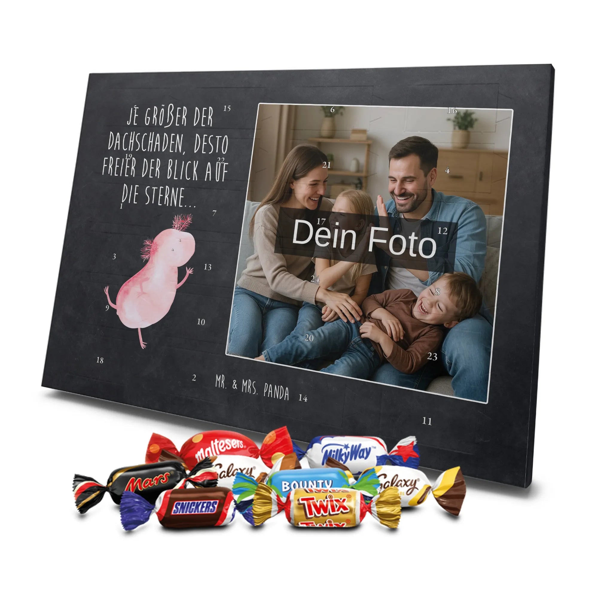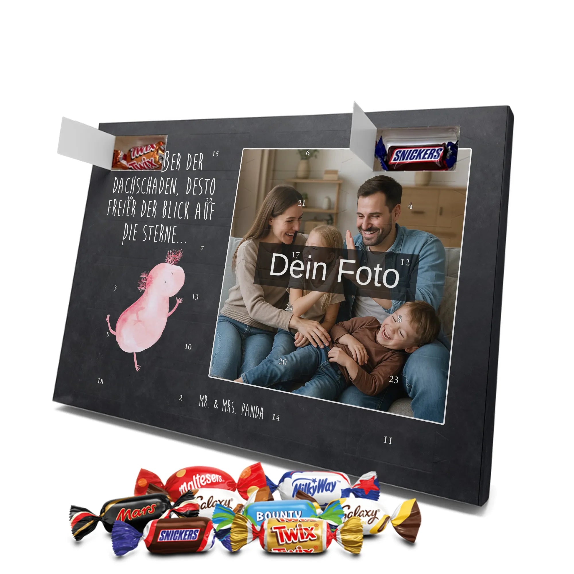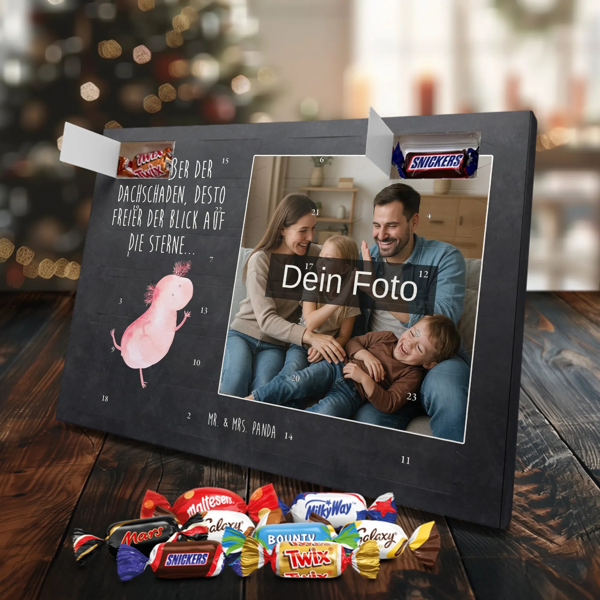 Lustiger Personalisierter Schoko Foto-Adventskalender – das Must-have für eine persönliche Adventszeit von Mr. & Mrs. Panda. Jeder Kalender wird mit unseren charmanten Illustrationen und liebevollen Sprüchen bedruckt, während dein Foto die Vorderseite einzigartig macht. Achte bitte darauf, ein Foto mit guter Qualität und ausreichend hoher Auflösung hochzuladen, damit der Druck gestochen scharf wirkt. Überprüfe den Bildausschnitt, damit wichtige Bereiche nicht verloren gehen. Denk daran, nur Bilder zu verwenden, bei denen du die nötigen Rechte besitzt. Die Verarbeitung ist hochwertig: brillante Druckqualität mit seidenmatter Oberflächenveredelung und bedruckten Seitenflächen. Maße: 325 mm x 225 mm x 27 mm. Du kannst den Kalender aufhängen oder aufstellen – sehr praktisch. Hinweis: Die hochgeladenen Fotos werden nicht nachbearbeitet oder zugeschnitten; Rücknahme bei personalisierten Foto-Artikeln ist ausgeschlossen. Gefüllt ist der Kalender mit Celebrations Schokolade – 24 Stück in 8 verschiedenen Sorten (Maltesers, Mars, Snickers, Twix, Milky Way, Bounty, Galaxy, Galaxy Caramel). Verschenke ein Stück persönlich gestaltete Vorfreude und mache jeden Dezembertag zu etwas Besonderem.